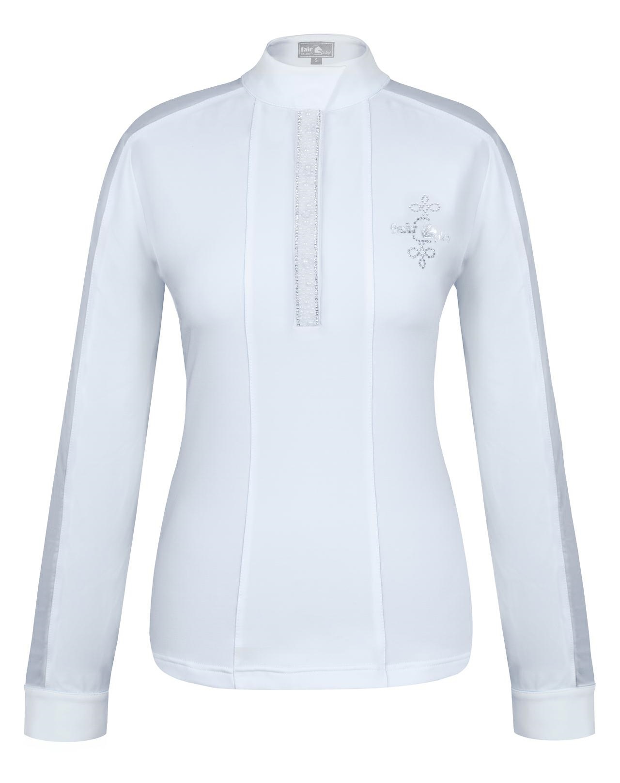 • Camisa de manga larga muy elegante • Confeccionada con un tejido técnico elástico, transpirable y que absorbe la humedad • Inserciones de malla en las mangas y la espalda para aumentar el flujo de aire • Decorada con una impresionante tira de joyería de perlas en la parte delantera