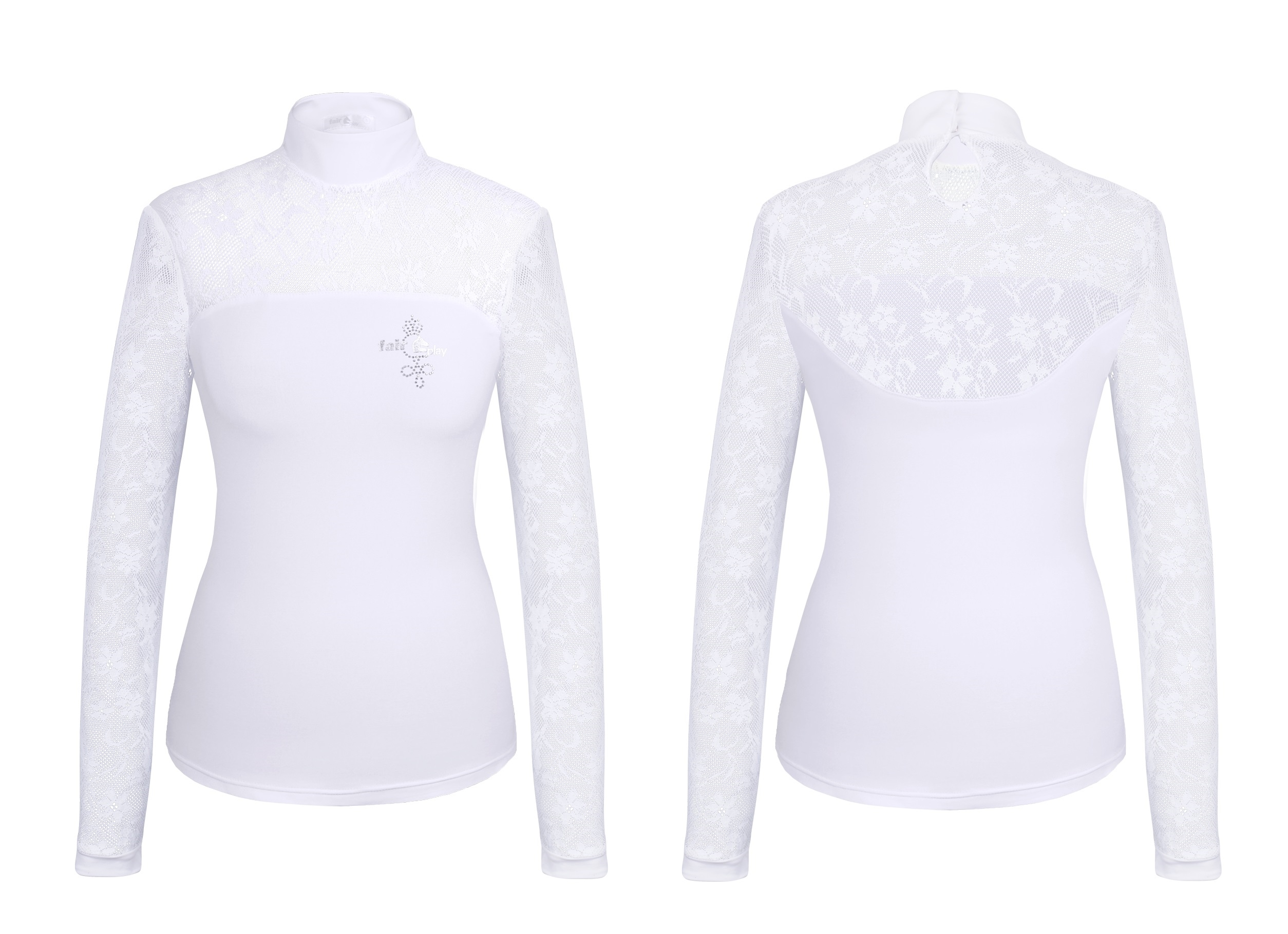 • Camiseta de competición elegante y muy femenina con mangas largas • Confeccionada con un tejido técnico elástico, transpirable y que evacua la humedad • Mangas e inserciones confeccionadas con un inserto decorativo de encaje elástico que garantiza una mejor transpirabilidad