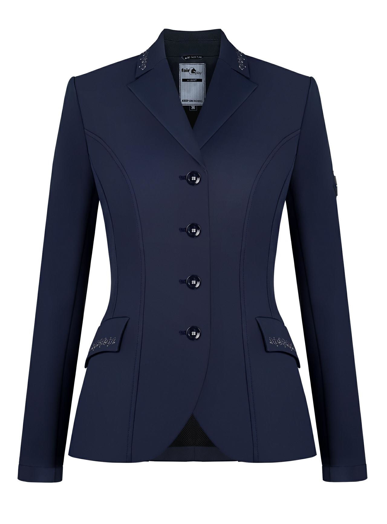 •Chaqueta entallada, deportiva y elegante, con doble ventilación en la espalda. • Cremallera oculta detrás de la tira de botones para un ajuste perfecto. • Tejido COMFINAT-tech™ muy transpirable y elástico. • Elegante bordado decorativo con motivo de caballo y pedrería en el cuello y en los bolsillos delanteros•Dos bolsillos delanteros cerrados con botones automáticos ocultos •Ojales debajo de las axilas•Forro de malla altamente transpirable•Logotipo decorativo Fair Play en la manga