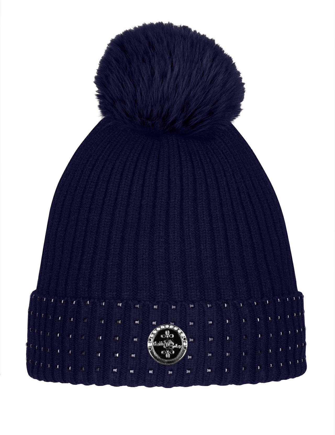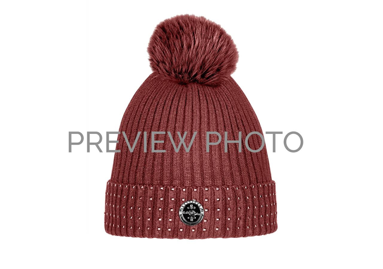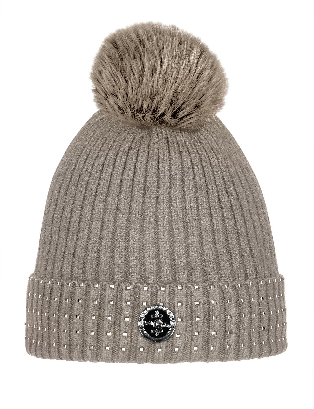 • Cálido gorro de invierno, decorado con un bonito pompón • Forrado con un material de felpa elástico y agradable al tacto • Decorado con discretos cristales • Logotipo Fair Play en la parte delantera