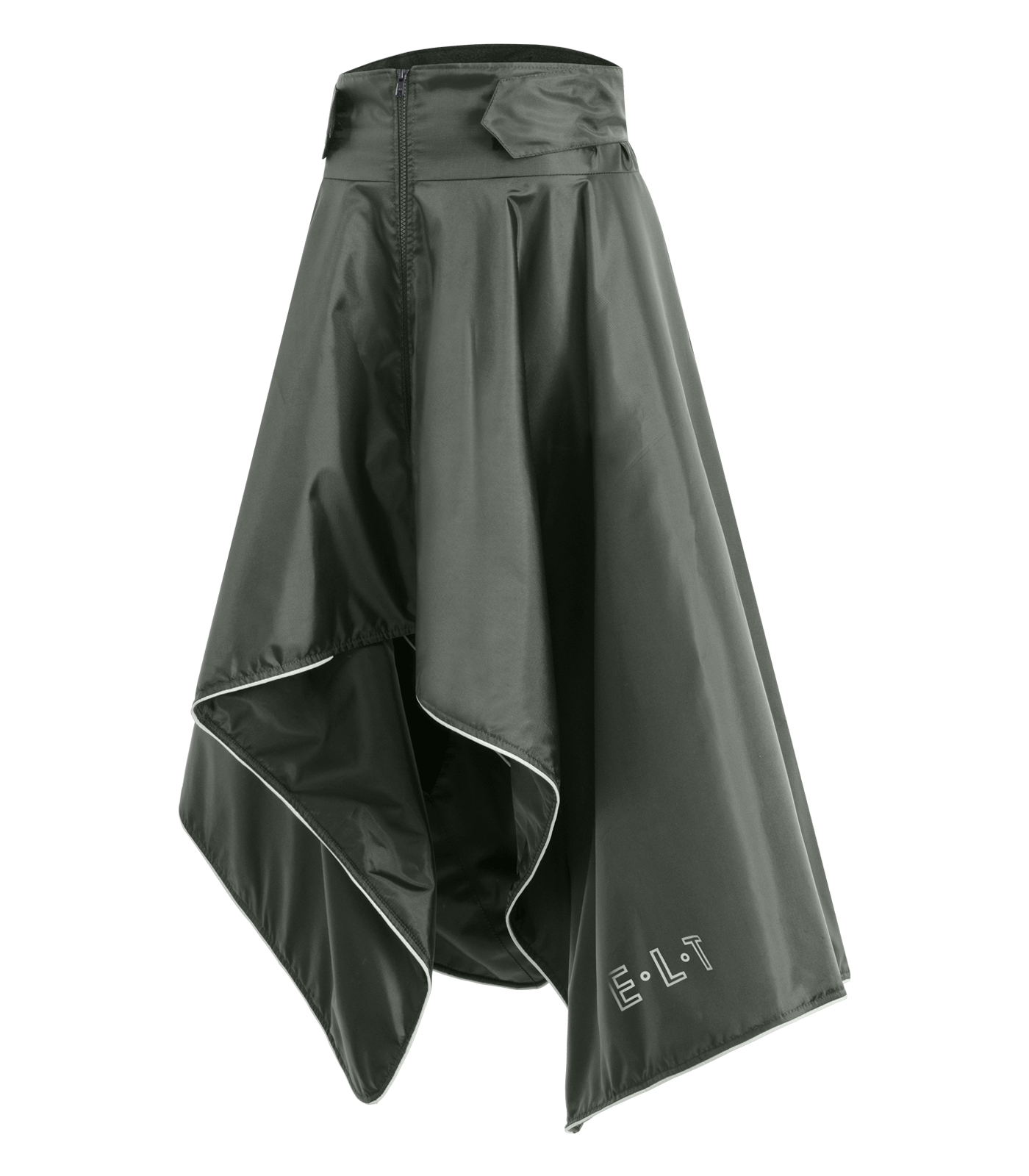– Regulación de la anchura mediante cierre de gancho y bucle – Material repelente al agua – Cremallera frontal – Muslera interior con cierre de gancho y bucle – Logotipo estampado E·L·T, reflectante, lado delantero y trasero – Cinta de ribete reflectante Material: 100 % poliéster