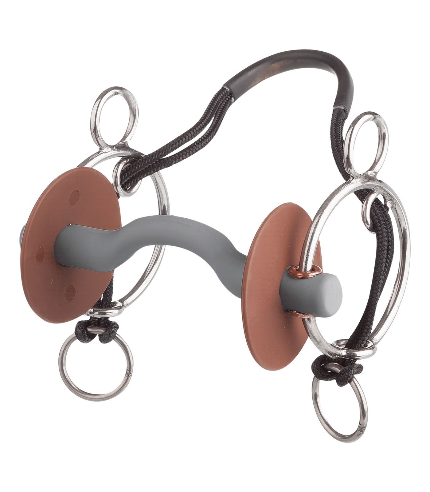 El cañón con desveno tiene una forma particularmente aplanada del arco. A la lengua se le confiere un espacio óptimo. Numerosos caballos reaccionan así más relajados y con una actividad más intensa de masticación. No obstante, la embocadura es igualmente adecuada para aquellos caballos que intentan colocar la lengua sobre la embocadura, pues el arco lo impide de modo efectivo. Por lo tanto, esta pieza bucal es ideal para aquellos caballos, que no toleran las embocaduras con forma convencional debido a la presión ejercida sobre la lengua y que, por este motivo, reaccionan, entre otras formas, con movimientos bruscos de la cabeza. Esta embocadura permite una distribución óptima de la presión sobre la mandíbula inferior y la boca y es muy bien tolerada por el caballo El segundo par de riendas actúa como una barbada que se puede tensar o soltar según sea necesario. Esta embocadura es ideal para caballos particularmente potentes y llenos de energía. Las embocaduras ideales tanto para el jinete ambicionado de tiempo libre como también de competiciones. La manufactura de embocaduras beris en la región alemana del norte Slesvig-Holstein se basa en una actividad de muchos años en la producción de embocaduras y en la experiencia acumulada resultante de la misma, así como en la habilidad artesanal y la pasión por el deporte ecuestre. Por amor al caballo. El respeto de la sensibilidad de la boca del caballo es nuestra prioridad principal. De la anilla al sofisticado lateral: cada pieza bucal se moldea, se suelda y se le da lustre a mano, El diseño único en su género de la pieza bucal mejora además la aceptación de la misma y facilita la comunicación dosificada entre caballo y jinete. Las piezas bucales beris constan de un plástico inalterable por comestibles, y presentan un acabado y una calidad de superficie inigualables hasta la fecha en embocaduras de plástico. Su superficie es particularmente lisa y se deslizan bien en la boca, incluso en caballos que producen poca saliva. Prácticamente a todos los caballos les gustan nuestras piezas bucales. Producen saliva, mastican más y aceptan mejor la embocadura. Una verdadera obra artesanal hecha en Alemania. Altura del arco: 30 mm, espesor de la embocadura: 18 mm