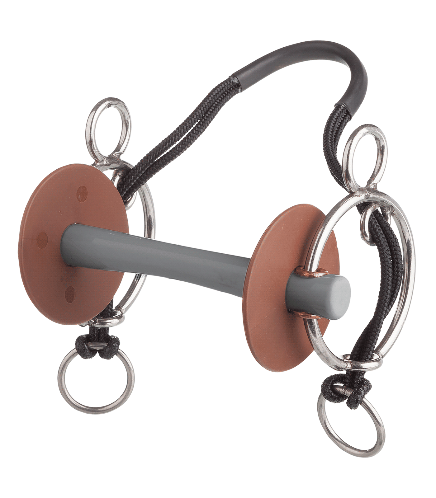 La embocadura anatómica se apoya de modo uniforme y ligeramente sobre la lengua y los lados y ofrece a la lengua más espacio y libertad de movimiento. Al coger las riendas se ejerce una presión uniforme sobre el lado de la mandíbula inferior y la lengua. No es posible enganchar ni pellizcar la lengua ni los lados. También se pueden evitar pellizcos en las comisuras empleando las arandelas respectivas. El cañón Confort se mantiene apoyado en una posición particularmente estable gracias a su forma ligeramente abombada. Las embocaduras con un cañón ligeramente abombado son muy suaves y su uso es muy adecuado para tratar con sumo cuidado la boca del caballo. Estas características en combinación con nuestro plástico beris son garantía de una comunicación aún mas suave y confortable entre jinete y caballo. El cañón Confort es apropiado sobre todo para su uso en caballos jóvenes y sensibles. Esta embocadura permite una distribución óptima de la presión sobre la mandíbula inferior y la boca y es muy bien tolerada por el caballo El segundo par de riendas actúa como una barbada que se puede tensar o soltar según sea necesario. Esta embocadura es ideal para caballos particularmente potentes y llenos de energía. Las embocaduras ideales tanto para el jinete ambicionado de tiempo libre como también de competiciones. La manufactura de embocaduras beris en la región alemana del norte Slesvig-Holstein se basa en una actividad de muchos años en la producción de embocaduras y en la experiencia acumulada resultante de la misma, así como en la habilidad artesanal y la pasión por el deporte ecuestre. Por amor al caballo. El respeto de la sensibilidad de la boca del caballo es nuestra prioridad principal. De la anilla al sofisticado lateral: cada pieza bucal se moldea, se suelda y se le da lustre a mano, El diseño único en su género de la pieza bucal mejora además la aceptación de la misma y facilita la comunicación dosificada entre caballo y jinete. Las piezas bucales beris constan de un plástico inalterable por comestibles, y presentan un acabado y una calidad de superficie inigualables hasta la fecha en embocaduras de plástico. Su superficie es particularmente lisa y se deslizan bien en la boca, incluso en caballos que producen poca saliva. Prácticamente a todos los caballos les gustan nuestras piezas bucales. Producen saliva, mastican más y aceptan mejor la embocadura. Una verdadera obra artesanal hecha en Alemania. Espesor de la embocadura 18 mm.