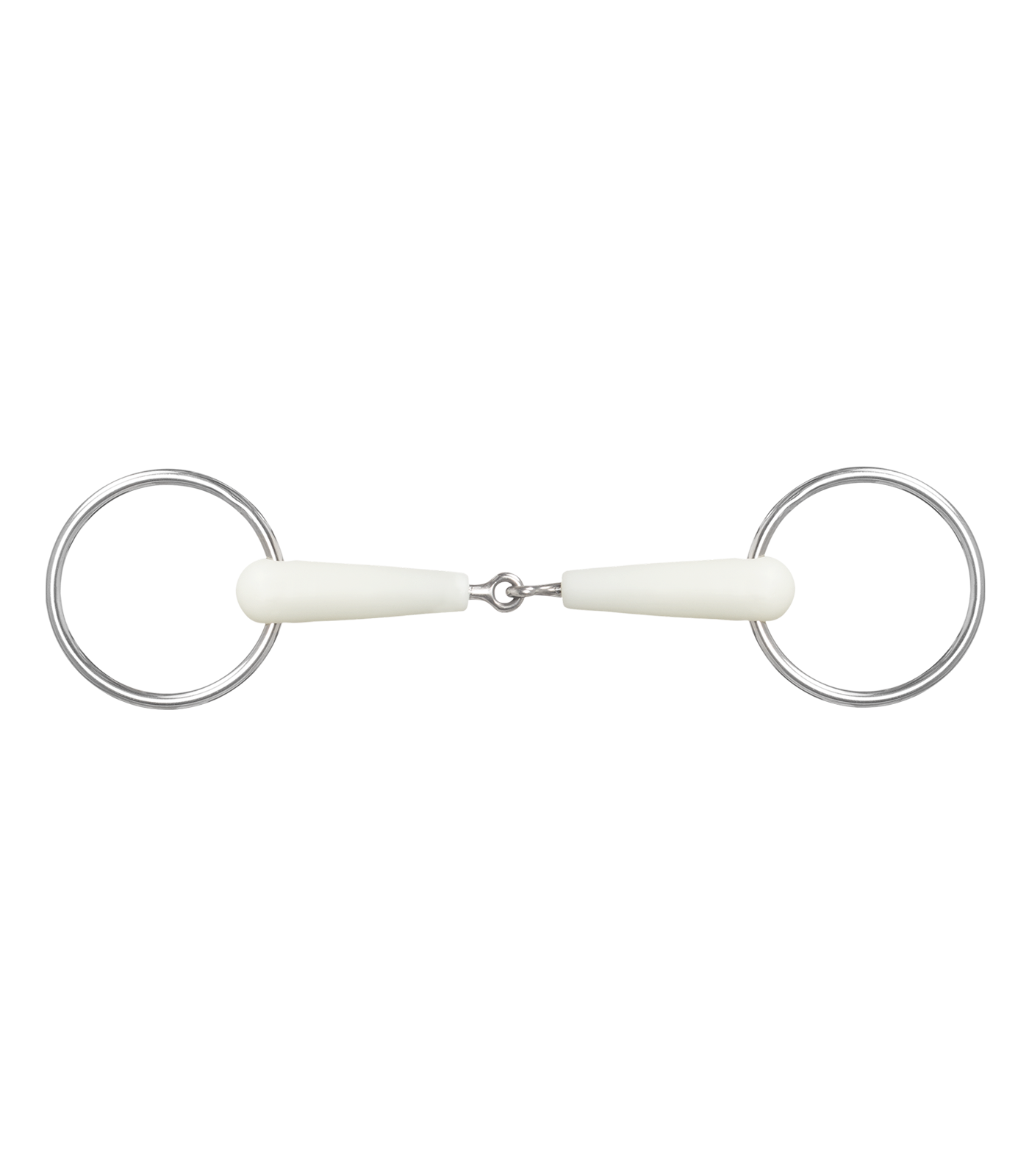 El original: HAPPY MOUTH con sabor a manzana ¡Embocaduras para caballos con gustos refinados! El prolongado sabor a manzana de la pieza bucal le encanta al caballo y estimula su masticación. Con superficie de plástico liso. Anillas y acoplamientos de acero inoxidable. Grosor: 20 mm, anillas: Ø 65 mm Para el tamaño 10,5 cm y 11,5 cm, el grosor es de 16 mm