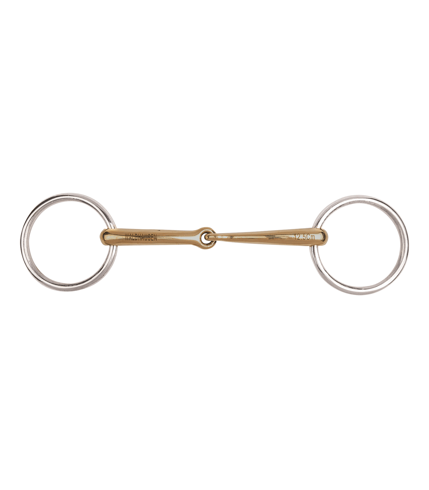 Anillas de acero inoxidable Los nuevos filetes para equitación de cobre de Waldhausen, con un contenido de cobre del 62%, favorecen la actividad masticatoria y la salivación. La aleación de cobre no contiene níquel y las anillas son de acero inoxidable. Grosor: 12 mm, anillas: Ø 55 cm