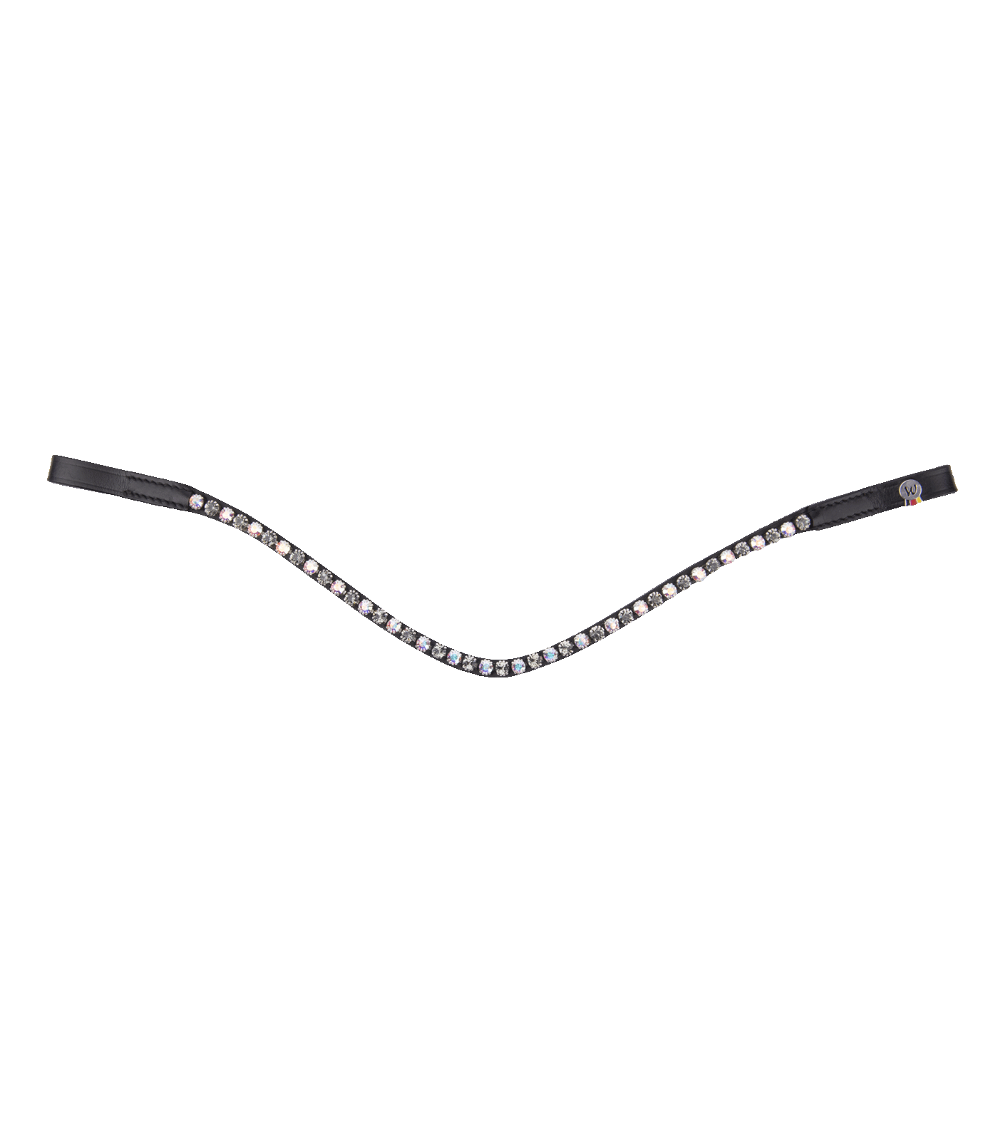 Frontalera estrecha y redondeada con inserción de piedras estrás resplandecientes.