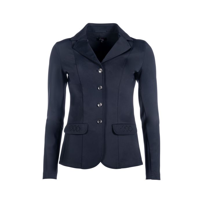 Americana de concurso -Aurora-, Americana de concurso -Aurora- transpirable resistente al barro casi inarrugable con brillantes finos entallado con doblez dorsal para montar cremallera oculta tras los botones El mejor producto ecuestre de competición en tienda hípica El Estribo Alicante +34648425534
