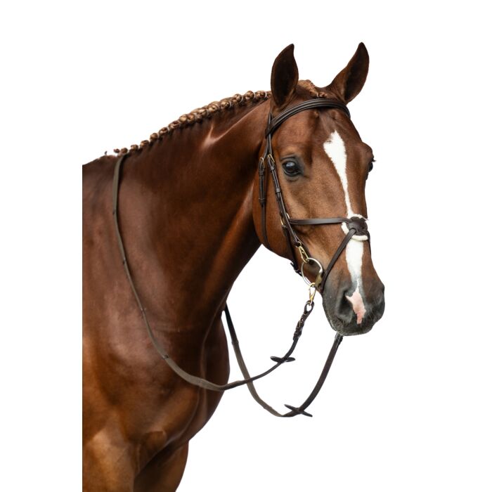 Cabezada -MexicanStyle-, Cabezada -MexicanStyle- hebillas de latón sin bocado cuero riendas de cintas con muserola mejicana El mejor producto ecuestre de competición en tienda hípica El Estribo Alicante +34648425534