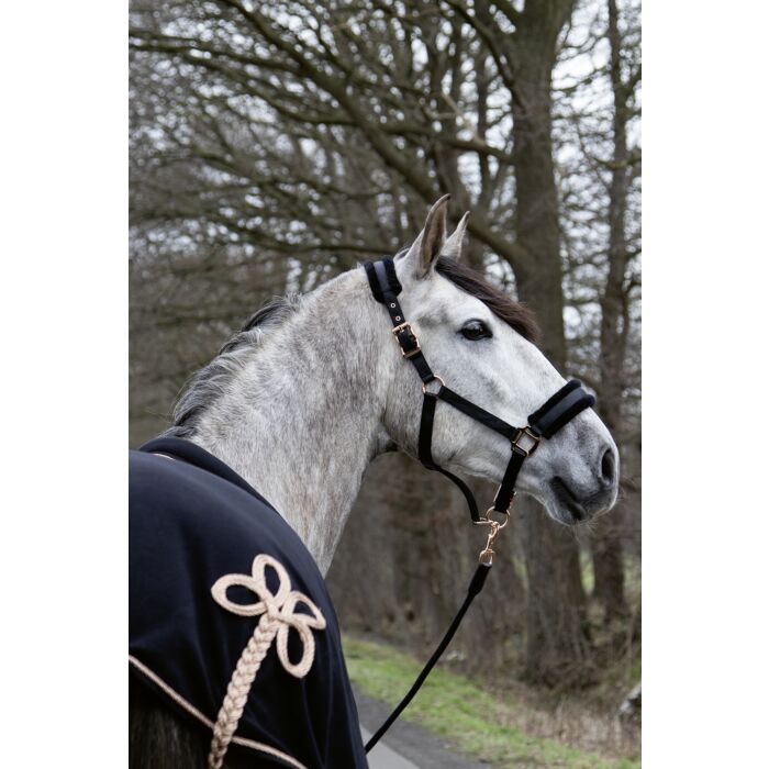 Cabezada -Rosegold Glamour- Style, Cabezada -Rosegold Glamour- Style correa de naríz y frente con funda muy suave abrir con mosquetón hebillas reforzadas ajustable a ambos lados muserola ajustable con borreguillo sintético accesorios de color oro rosa