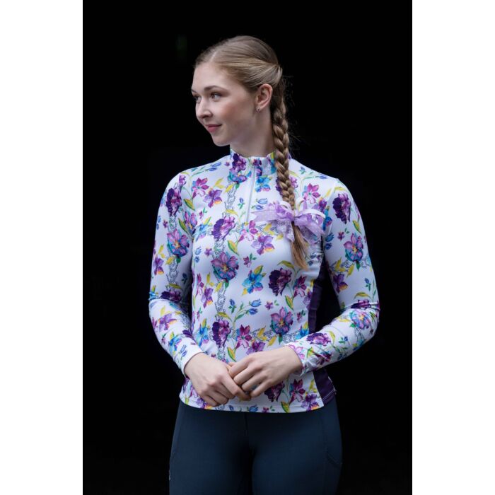 Camiseta funcional -Lilac Flower-, Camiseta funcional -Lilac Flower- transpirable elastico secado rápido antebrazo de mesh entallado cremallera corta delantera El mejor producto ecuestre de competición en tienda hípica El Estribo Alicante +34648425534