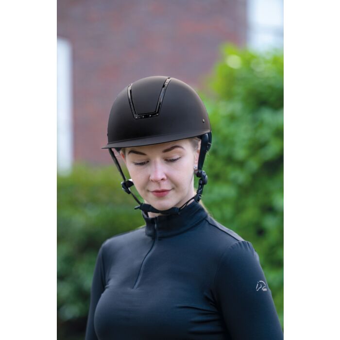Casco de montar -Lady Shield Diamond-, Casco de montar -Lady Shield Diamond- entrega enbolsa de tela farro interior cambiable aberturas de ventilación delanteras y traseras parte interior con acolchado suave multi-ajustable por rueda sistema 3 puntos de correas de seguridad cumple con las regulaciones vg1 01.040 2014-12 El mejor producto ecuestre de competición en tienda hípica El Estribo Alicante +34648425534