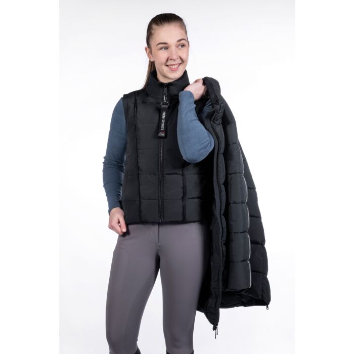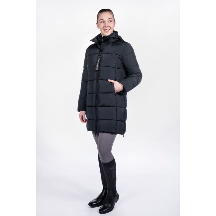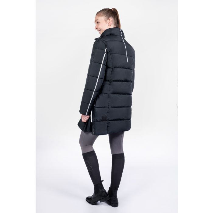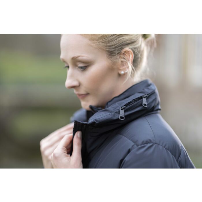 Chaqueta de montar -Dakota-, Chaqueta de montar -Dakota- resistente al agua cremallera doble acolchado moderno con suave relleno de lana bolsillo interior longitud en talla S 90 cm llavero desmontable cuello con cremallera y capucha oculta puños calientes cuello alto con cálido forro polar bolsillos con cálido forro polar bolsillos con ganchos elásticos para colgar llaves y objetos pequeños modelo 2 en 1 con chaleco interior el chaleco se puede quitar con cremallera y llevar por separado cremalleras en latelares para montar, con interior reflectante impresión reflectante en la manga y la espalda El mejor producto ecuestre de competición en tienda hípica El Estribo Alicante +34648425534
