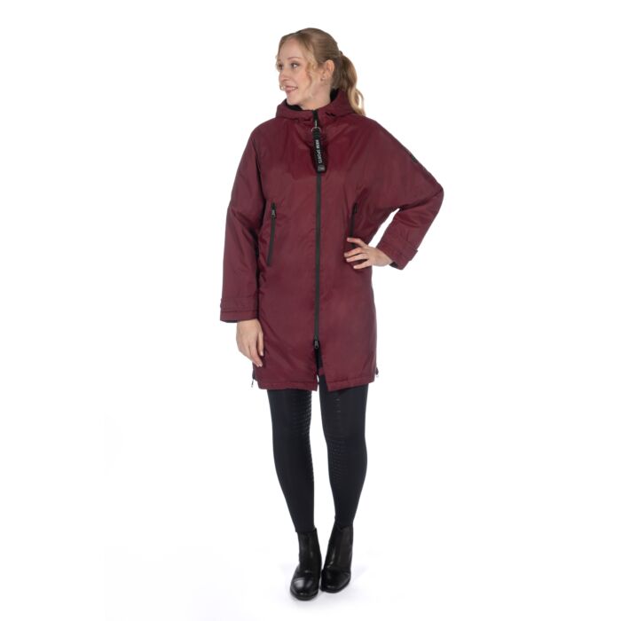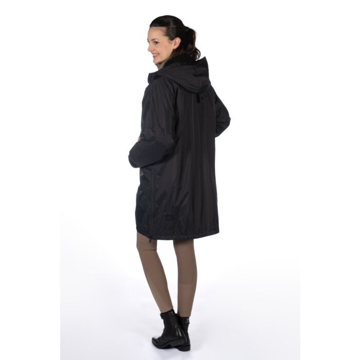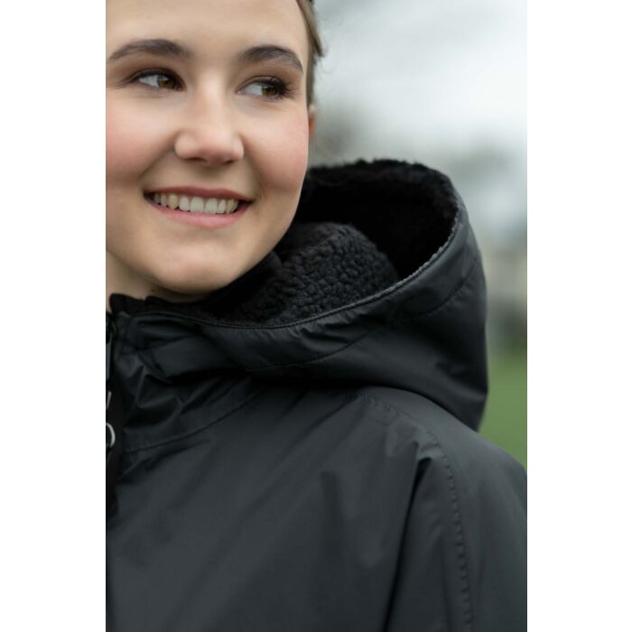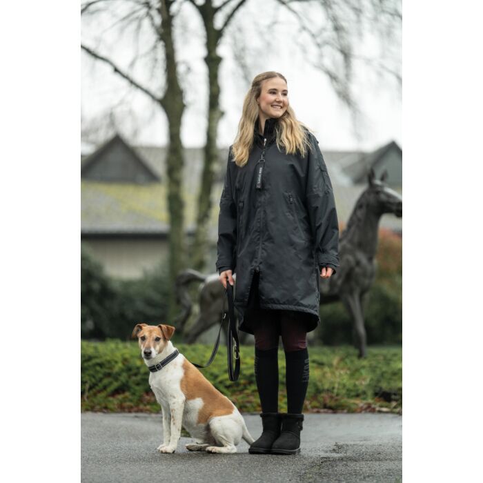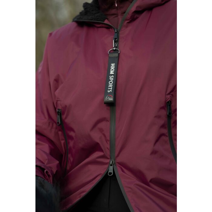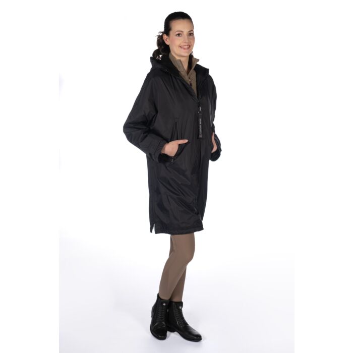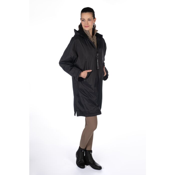 Chaqueta de montar -Julie-, Chaqueta de montar -Julie- impermeable 3.000 mm costuras soldadas material de membrana impermeable bolsillo interior respiraderos laterales con cremallera longitud en talla S: 95 cm llavero desmontable la capucha puede fijarse mediante un botón a presión dobladillo de la manga ajustable con cierre de velcro bolsillos exteriores extra impermeables cremallera bidireccional impermeable en la parte delantera forrado con forro de peluche de gran tamaño El mejor producto ecuestre de competición en tienda hípica El Estribo Alicante +34648425534
