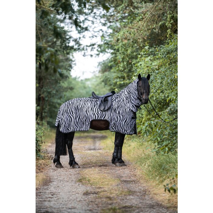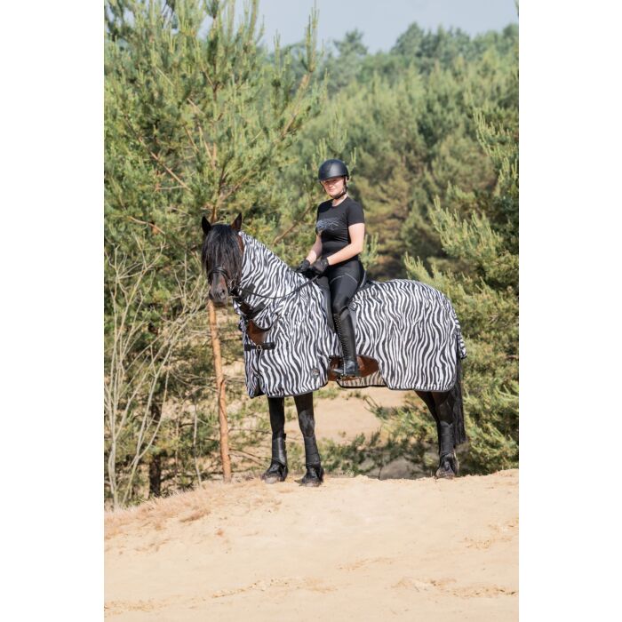 Manta anti-moscas -Zebra-, Manta anti-moscas -Zebra- protección del caballo contra insectos irrompible correa para cola desenganchable protección de cuello fija hueco para la silla El mejor producto ecuestre de competición en tienda hípica El Estribo Alicante +34648425534