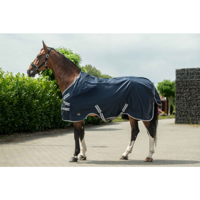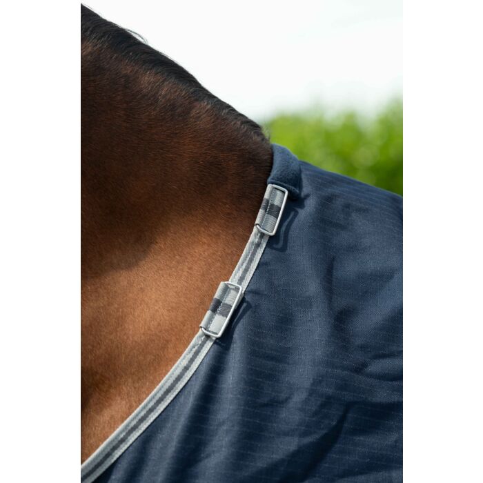 Manta de exterior -Therma Pro- cuello desmontable, Manta de exterior -Therma Pro- cuello desmontable impermeable transpirable transpirable: 3.000 ml m²/24 h impermeable 3.000 mm alta permeabilidad a la humedad sistema de sujeción flexible en V con doble velcro integrado y piezas intercambiables tejido hi-tech Breathe-Comfort el tejido funcional transporta rápidamente la humedad fuera la longitud de la espalda de la manta es 10 cm mayor que la longitud de la espalda del caballo tacto cómodo y suave multifuncional, puede utilizarse como manta de lluvia todo el año extremadamente resistente a los factores climatológicos gracias a la regul. de tem. de -10°C a 20°C precaución: los caballos esquilados o de edad avanzada pueden congelarse la sensación de calor es individual – por favor, compruebe regularmente El mejor producto ecuestre de competición en tienda hípica El Estribo Alicante +34648425534