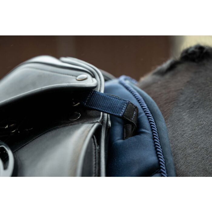 Mantilla -Samantha-, Mantilla -Samantha- relleno de espuma y algodón borde con cordón decorativo con forma anatómica pasadores con cierre de velcro antideslizante de silicona El mejor producto ecuestre de competición en tienda hípica El Estribo Alicante +34648425534