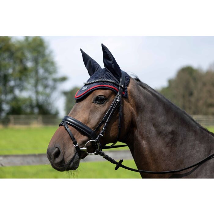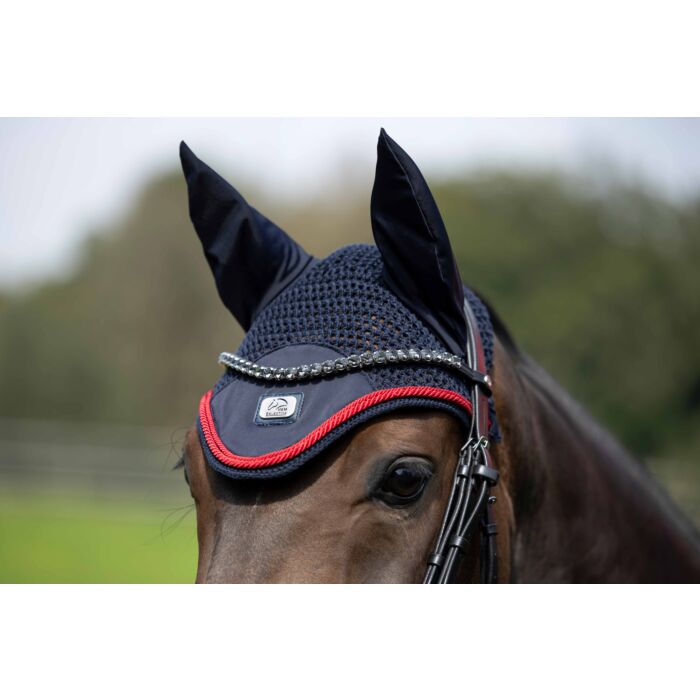 Mosquero -Aruba-, Mosquero -Aruba- protección del caballo contra insectos orejas elásticas borde con cordón decorativo logo de metal decorativo El mejor producto ecuestre de competición en tienda hípica El Estribo Alicante +34648425534