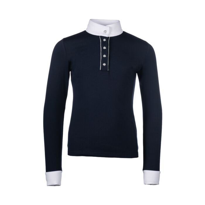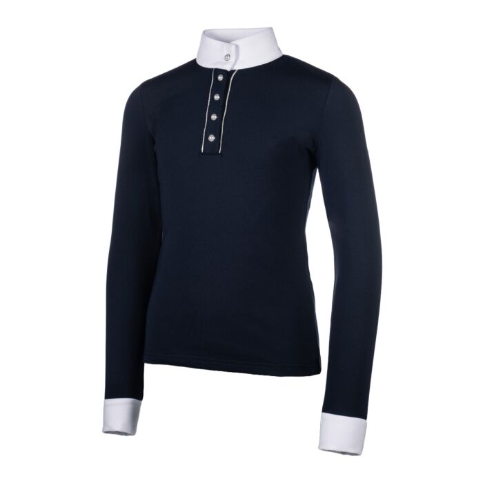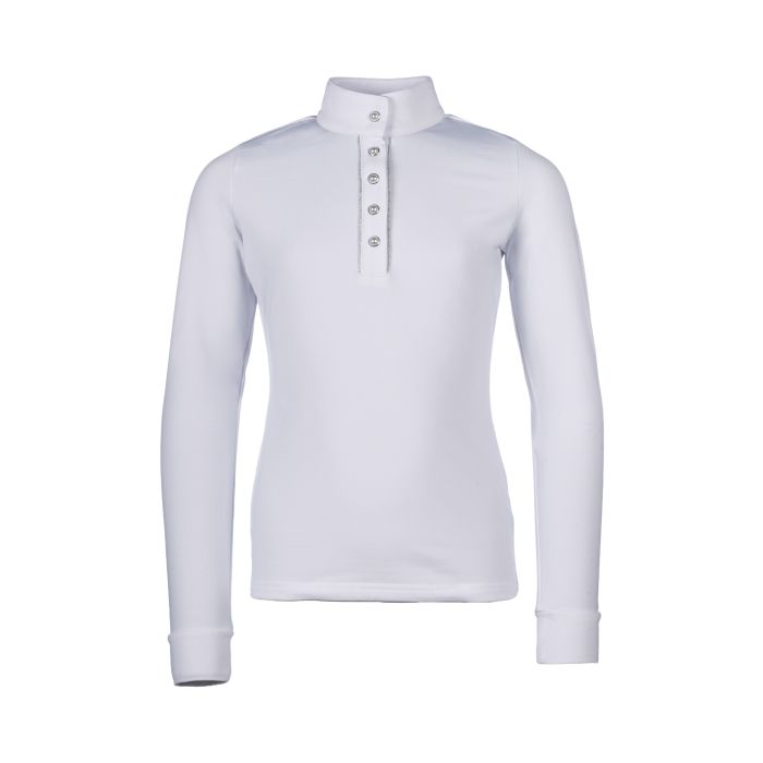 Polo de concurso -Emilia Kids-, Polo de concurso -Emilia Kids- transpirable elastico cepillado interior entallado botones de presión decorativos en nácar con ribetes de purpurina en la tapeta de botones El mejor producto ecuestre de competición en tienda hípica El Estribo Alicante +34648425534