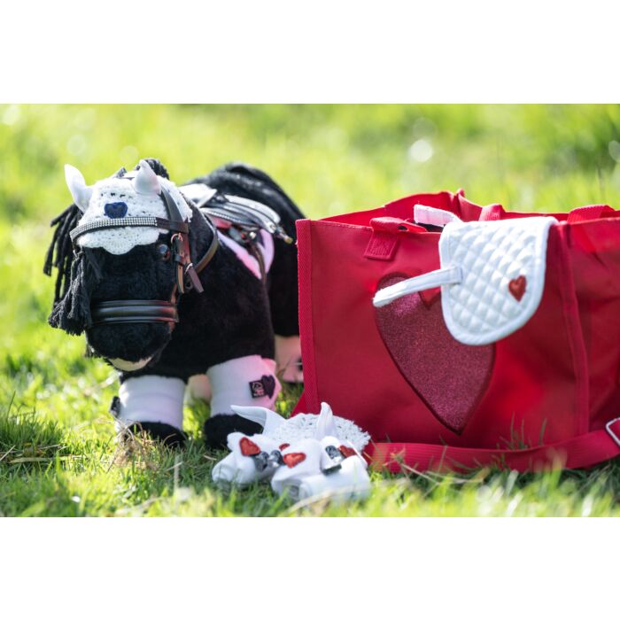 Set Competición -Cuddle Pony-, Set Competición -Cuddle Pony- versión mini de productos reales para caballos parche de corazón amoroso en todos los artículos set de competición compuesto por mantilla, mosquero y vendas atención: no apto para menores de 3 años artículos para Cuddle Pony cumple los requisitos de ensayo europeos de las directrices sobre juguetes El mejor producto ecuestre de competición en tienda hípica El Estribo Alicante +34648425534