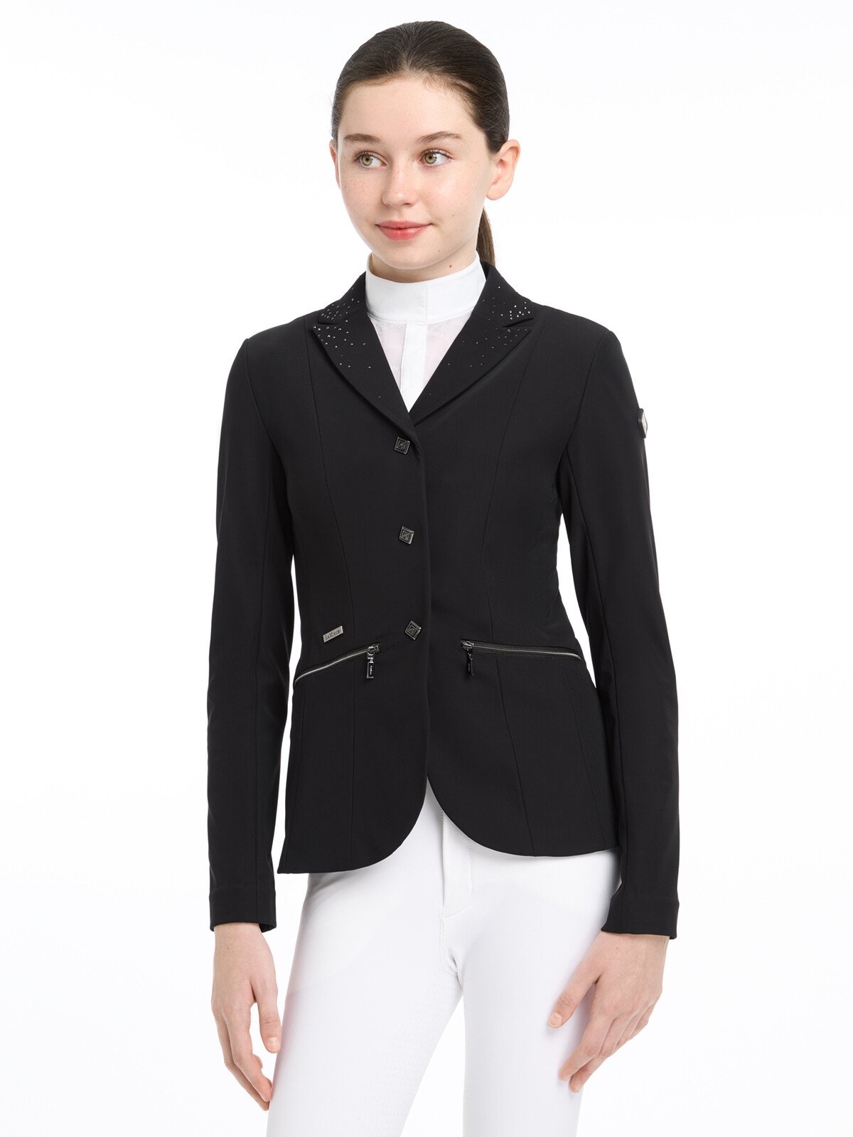 Nuestra chaqueta Signature Lemieux Premium, escalada para jóvenes jinetes. Construido para la competencia, tiene respiraderos laterales perforados forrados con malla de aire de rendimiento para la comodidad y la transpirabilidad. Los detalles de cristal sofisticados en el collar, la correa trasera y las puntas de cola dividida dan una ventaja sofisticada, mientras que los sutiles toques finales de la marca Lemieux en la cadera y el brazo transmiten una confianza tranquila. Generosos bolsillos laterales y una cremallera frontal duradera con Poppers de marca Lemieux distintivos brindan practicidad a esta chaqueta de parpadeo.