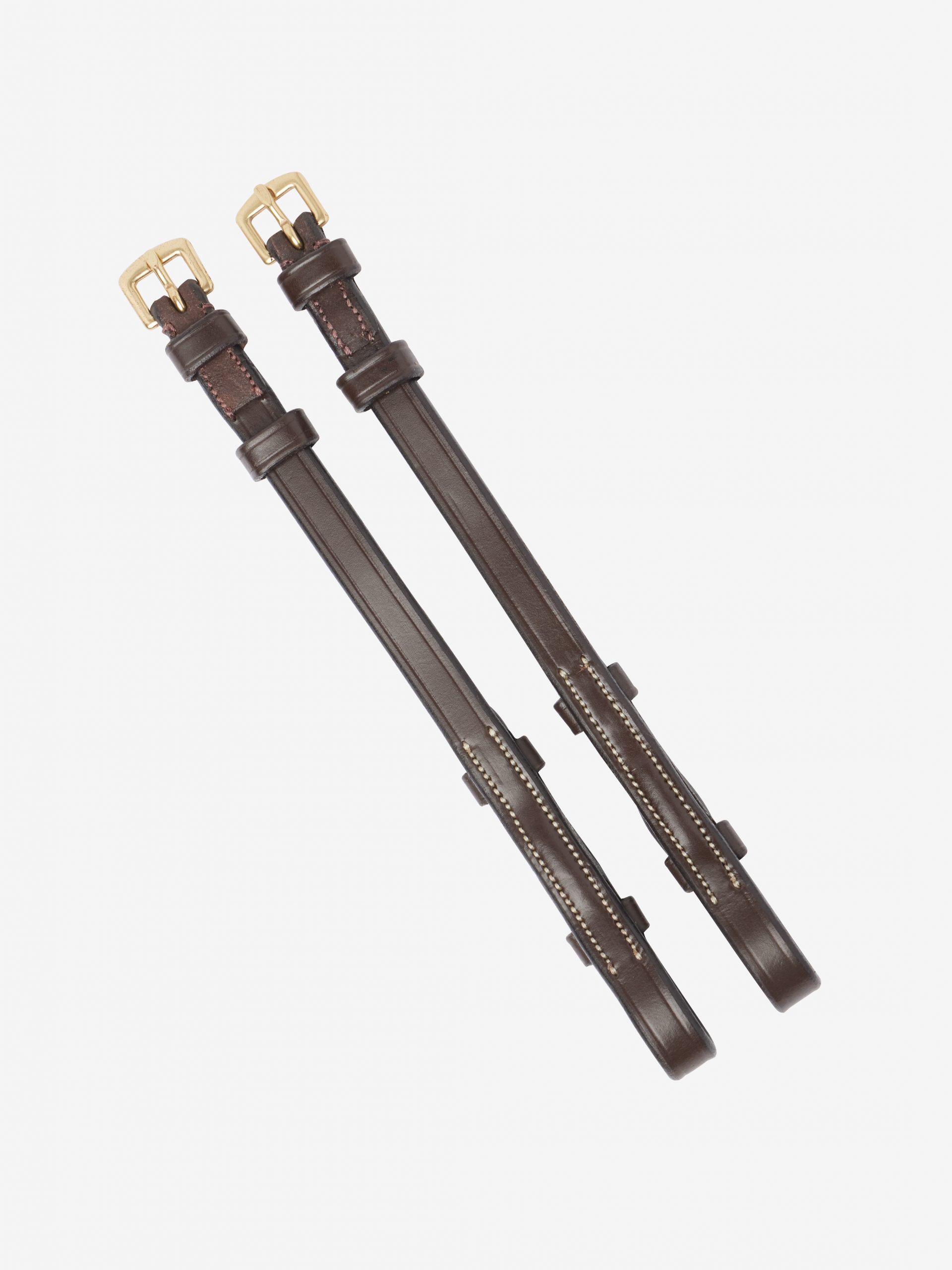 Lemieux Kudos Bridlework está hecho del mejor cuero pre-engrasado flexible con costuras tradicionales, el ideal en practicidad y estilo para el uso diario. Estas pómulos se unen a la brida con una hebilla segura. Cuentan con una fijación interna de tocho de bajo perfil para unir la broca.