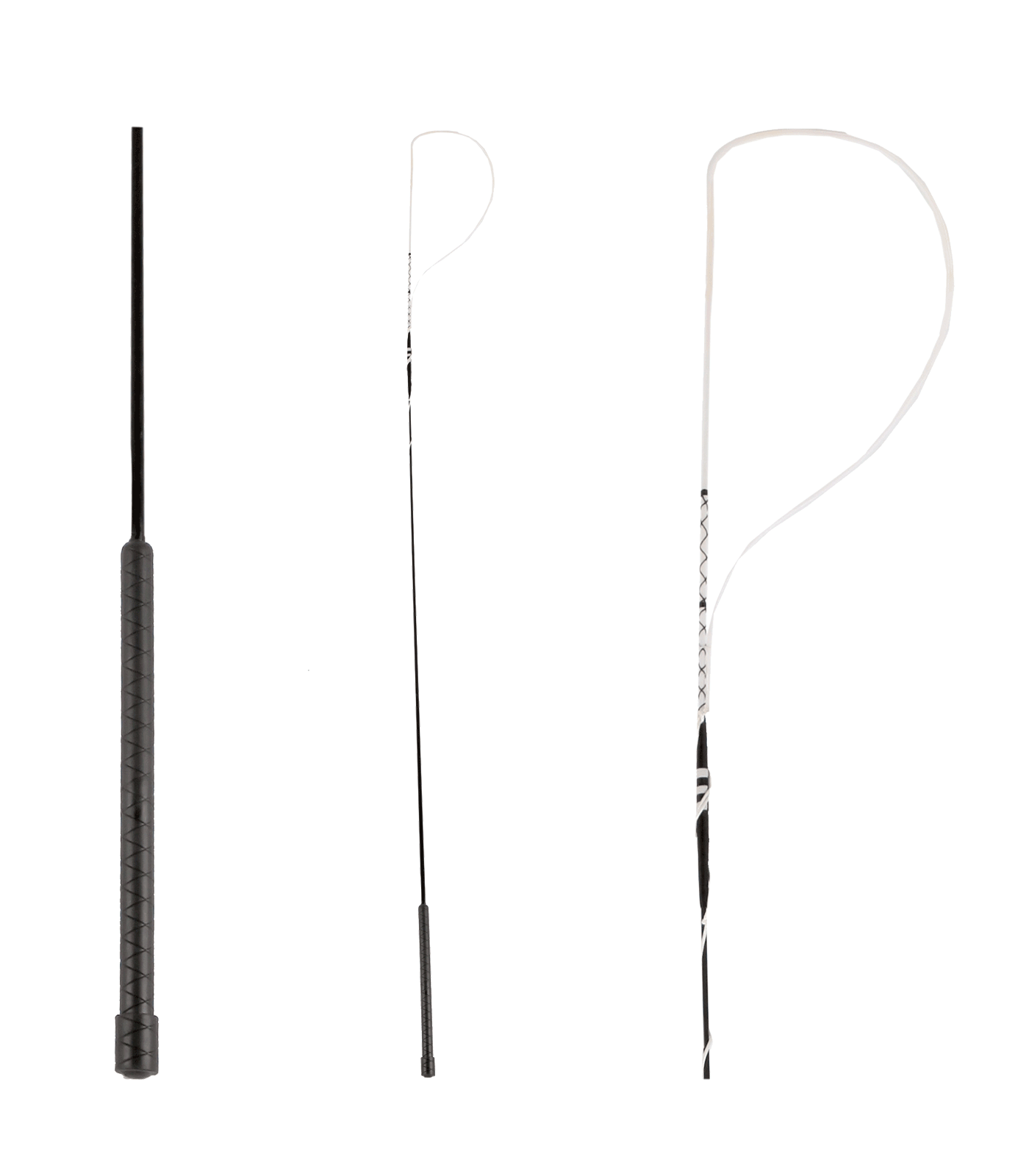 Látigo de enganche con barnizado brillante en fibra de vidrio. Empuñadura de plástico y cuerda hilada. Longitud de punta: 80 cm