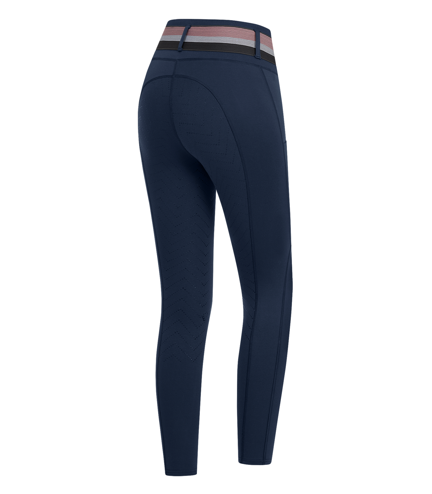 – Leggins de equitación con cintura alta – Inserción completa de silicona – Logotipo estampado de silicona integrado en la inserción – Bajo pierna elástico – Material bielástico, transpirable y repelente al agua con componente de fibras naturales – Cintura con cinta elástica policolor aplicada – 2 bolsillos laterales para móvil, en lado derecho con aplicación de silicona ELT – Trabillas Material: 60 % poliamida, 35 % viscosa, 5 % elastano