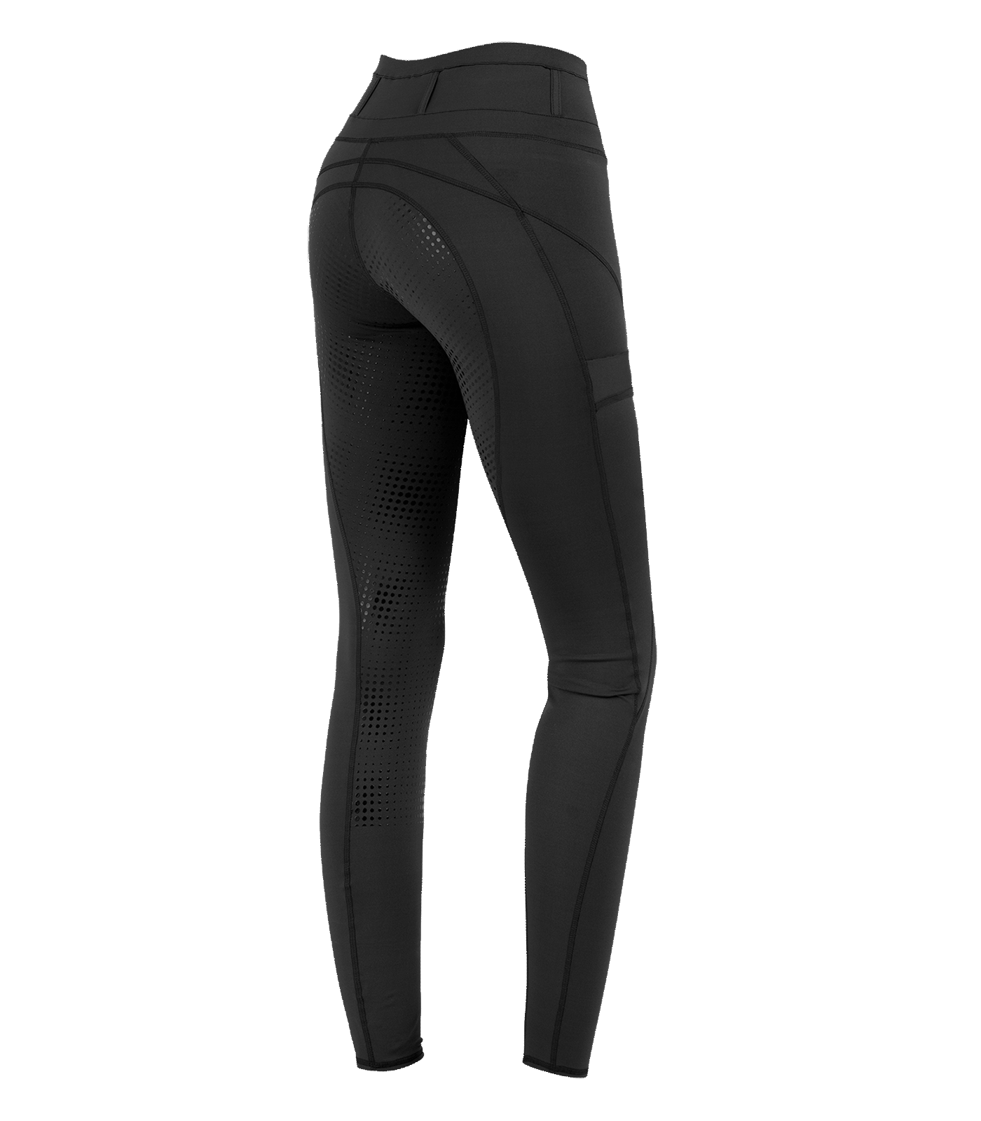 – Leggins de equitación con cintura alta – Inserción completa de silicona – Transpirable – Bi-elástico – Sintético – Ceñido – Efecto compresor – Bolsillos laterales portamóvil – Trabillas A1- mezcla de poliamida 78% poliamida, 22% elastano El material de compresión Stretch de poliamida de alta calidad tiene un efecto moldeador de la figura, es agradable al tacto, transpirable y de secado rápido. Material: 78% poliamida, 22% elastano