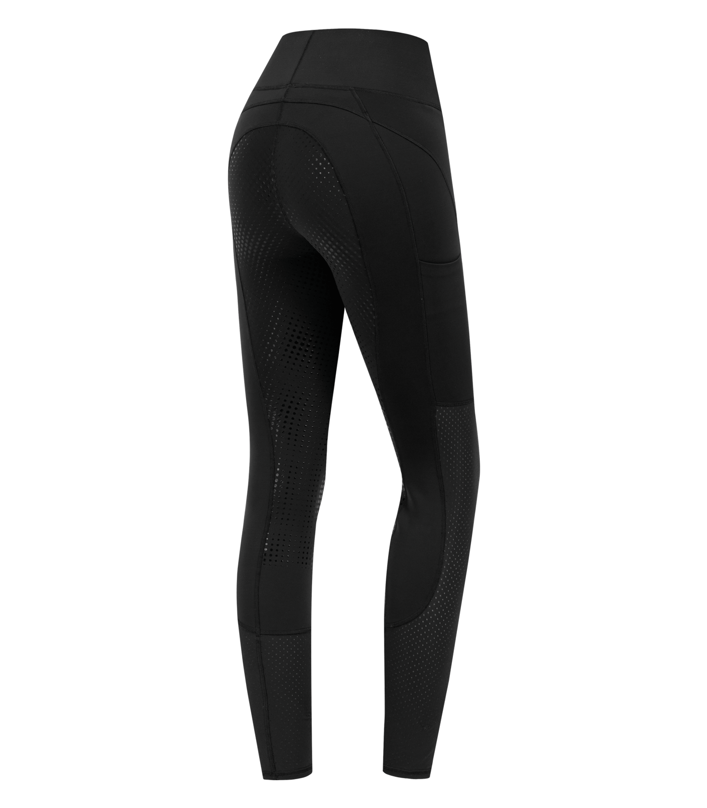 – Leggins de equitación con cintura alta – Inserción completa de silicona – Inserción de malla permeable al aire en la pierna – Transpirable – Bi-elástico – Sintético – Ceñido – Efecto compresor – Bolsillos laterales portamóvil Material: 78% poliamida, 22% elastano