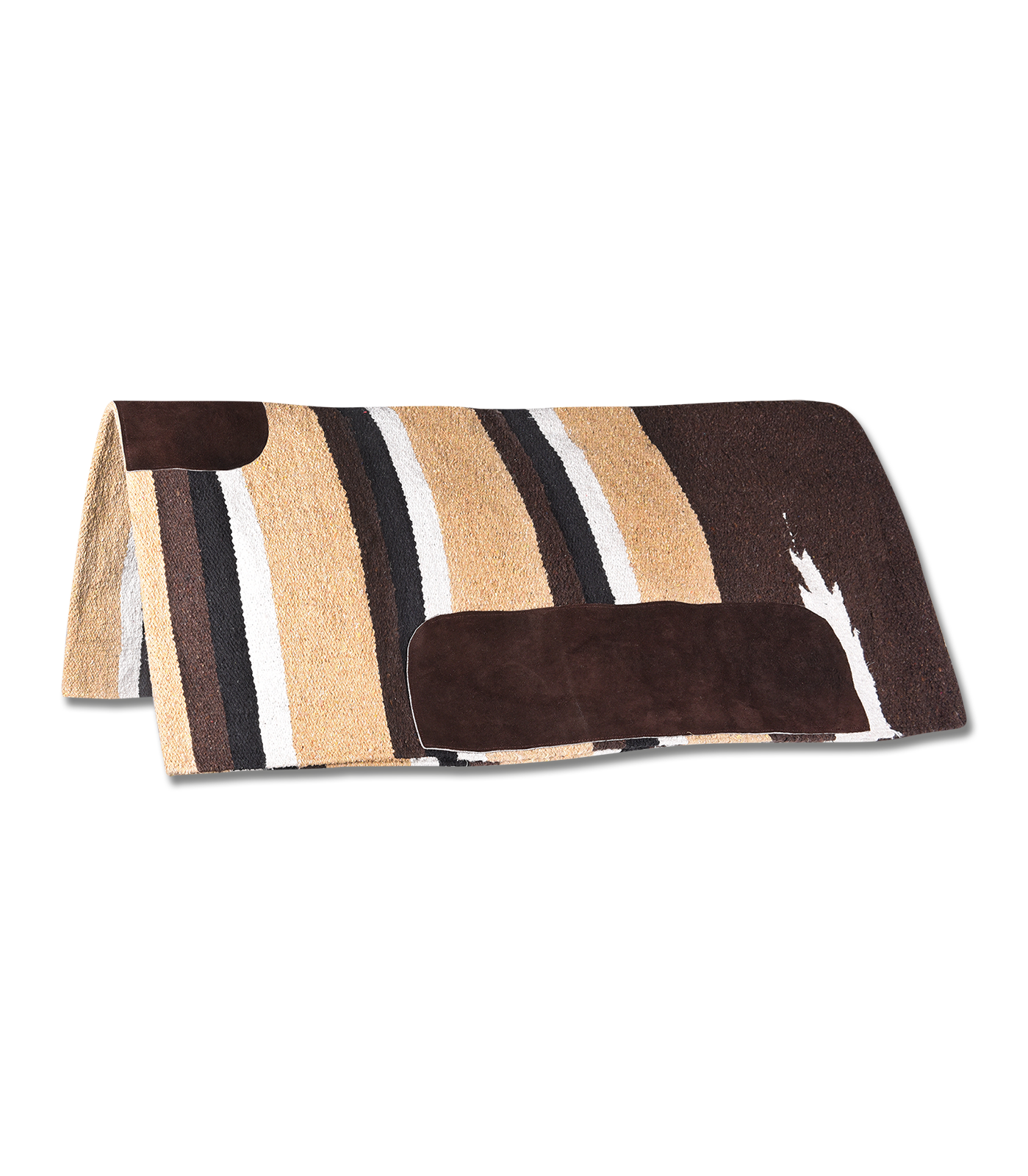 Mantilla para silla Western con patches de cuero. Se coloca doble. Material: 70 % algodón, 30 % poliéster Medidas: WB: 155 x 75 cm
