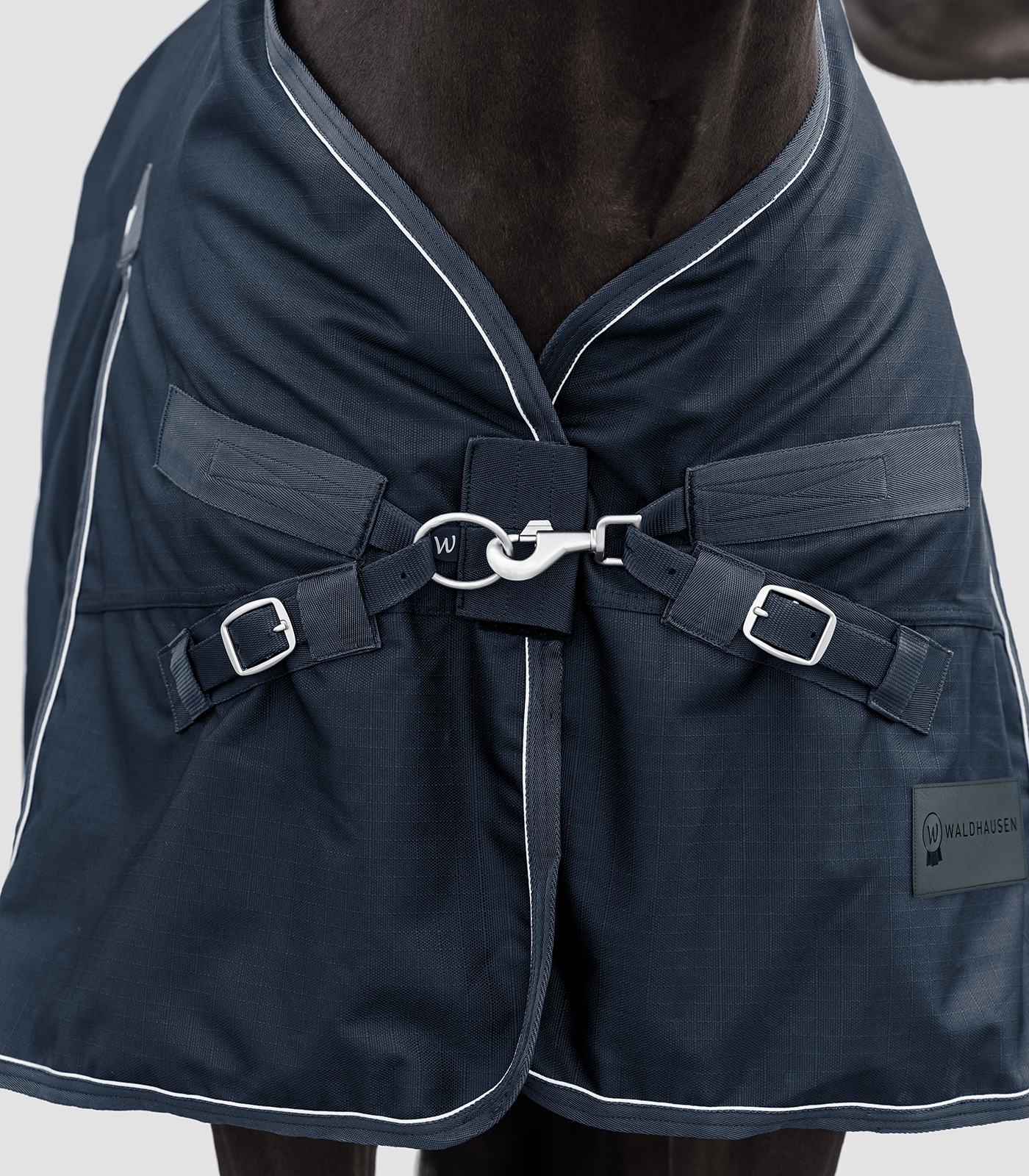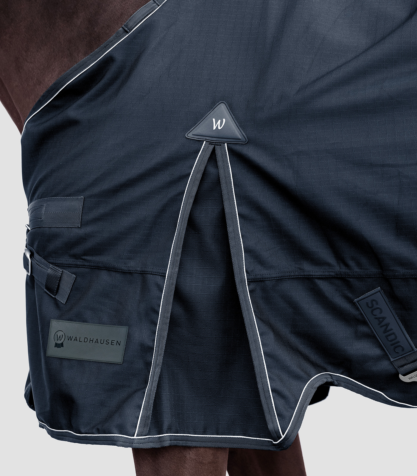 La manta Outdoor Waldhausen Scandic es la combinación definitiva de comodidad, funcionalidad, materiales de alta calidad y funciones innovadoras. El forro interior con efecto antibacteriano garantiza el máximo confort. El nuevo cierre frontal en V y el gran fuelle ofrecen un ajuste ideal y una libertad óptima de movimiento. El ribete reflectante aumenta la visibilidad y la seguridad del caballo en condiciones de poca iluminación. El material exterior de 1200D es garantía de una manta robusta y duradera que puede soportar los desafíos del uso en exterior. Inserción Stay Clean: Adiós a los pelos de caballo en las mantas recién estrenadas. La incrustación Stay Clean de Waldhausen es una solución práctica e innovadora para probar mantas de caballo de manera higiénica y sencilla, sin ensuciarlas ni llenarlas de pelos. Esta incrustación se integra directamente en las nuevas mantas de exterior de Waldhausen y se fija en el interior, evitando el contacto directo entre el lomo del caballo y la manta. El resultado: la manta permanece limpia, incluso si solo se ha utilizado una vez para una prueba. Es importante destacar que la incrustación Stay Clean está diseñada para un uso temporal durante la prueba y no para un uso permanente. Se puede retirar fácilmente simplemente despegándola. – 1200D Ripstop – Transpirable – Forro interior antibacteriano – Impermeable (columna de agua 3000 mm) – Cierre frontal práctico en V de una sola pieza con cierre complementario de gancho y bucle – Inserción de espuma a la derecha e izquierda junto a la cruz para reducir la presión ejercida por las prolongaciones de los pernos – Lazos de fijación para colocar un cuello – Compatible con las mantas Clip-in (armellas y anillas para fijar un interior térmico) – Fuelle extragrande para una libertad óptima de movimiento – 3 cinchas – Correas para las extremidades – Protector de cola muy grande con bordado reflectante Waldhausen – Hebillas de diseño Waldhausen – Ribete reflectante para una buena visibilidad – Con práctica bolsa para mantas Waldhausen – Con inserción Stay-Clean Exterior: 100 % poliéster Forro: 100 % poliéster Relleno: 100 % poliéster
