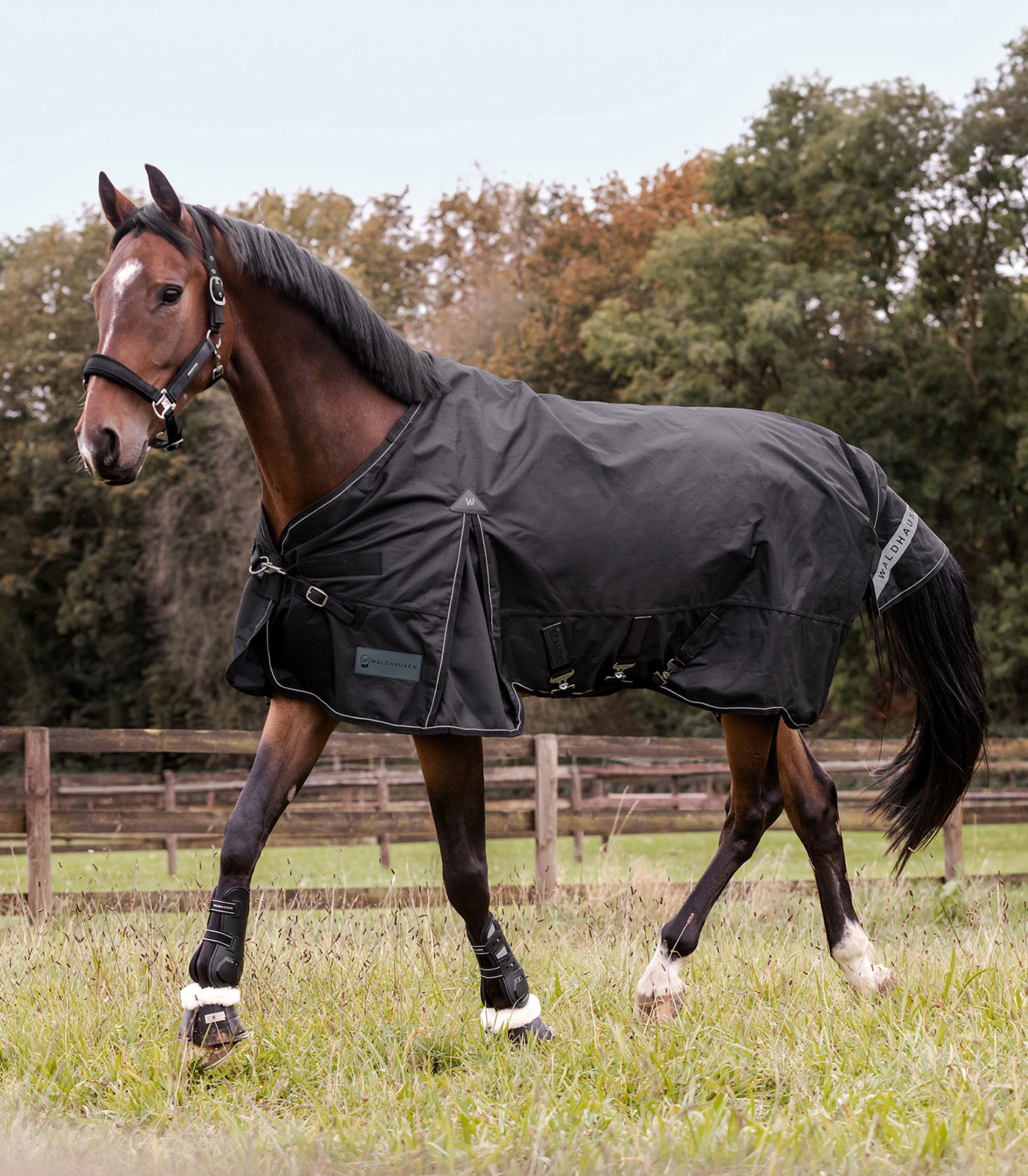 La manta Outdoor Waldhausen Scandic es la combinación definitiva de comodidad, funcionalidad, materiales de alta calidad y funciones innovadoras. El forro interior con efecto antibacteriano garantiza el máximo confort. El nuevo cierre frontal en V y el gran fuelle ofrecen un ajuste ideal y una libertad óptima de movimiento. El ribete reflectante aumenta la visibilidad y la seguridad del caballo en condiciones de poca iluminación. El material exterior de 1200D es garantía de una manta robusta y duradera que puede soportar los desafíos del uso en exterior. Inserción Stay Clean: Adiós a los pelos de caballo en las mantas recién estrenadas. La incrustación Stay Clean de Waldhausen es una solución práctica e innovadora para probar mantas de caballo de manera higiénica y sencilla, sin ensuciarlas ni llenarlas de pelos. Esta incrustación se integra directamente en las nuevas mantas de exterior de Waldhausen y se fija en el interior, evitando el contacto directo entre el lomo del caballo y la manta. El resultado: la manta permanece limpia, incluso si solo se ha utilizado una vez para una prueba. Es importante destacar que la incrustación Stay Clean está diseñada para un uso temporal durante la prueba y no para un uso permanente. Se puede retirar fácilmente simplemente despegándola. – 1200D Ripstop – Transpirable – Forro interior antibacteriano – Impermeable (columna de agua 3000 mm) – Cierre frontal práctico en V de una sola pieza con cierre complementario de gancho y bucle – Inserción de espuma a la derecha e izquierda junto a la cruz para reducir la presión ejercida por las prolongaciones de los pernos – Lazos de fijación para colocar un cuello – Compatible con las mantas Clip-in (armellas y anillas para fijar un interior térmico) – Fuelle extragrande para una libertad óptima de movimiento – 3 cinchas – Correas para las extremidades – Protector de cola muy grande con bordado reflectante Waldhausen – Hebillas de diseño Waldhausen – Ribete reflectante para una buena visibilidad – Con práctica bolsa para mantas Waldhausen – Con inserción Stay-Clean Exterior: 100 % poliéster Forro: 100 % poliéster Relleno: 100 % poliéster