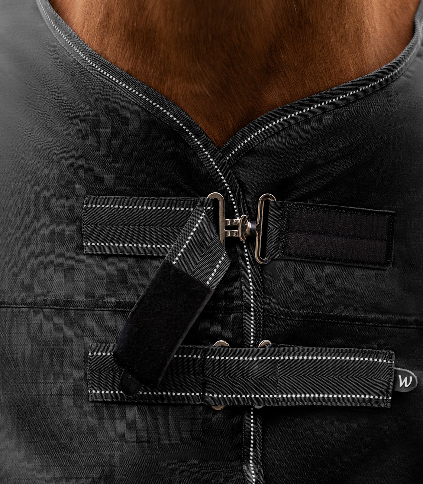 Con la manta Outdoor Waldhausen Artic podrá tener la seguridad de que el caballo estará perfectamente protegido incluso en condiciones adversas. El forro interior con efecto antibacteriano garantiza el máximo confort. Los cierres frontales dobles en T garantizan un ajuste seguro y tienen un efecto antideslizante. La banda elástica presenta detalles reflectantes y así aumenta la visibilidad en condiciones de poca luz. El fuelle de gran tamaño permite una libertad óptima de movimiento, mientras que las correas cruzadas proporcionan estabilidad adicional. El material exterior de 600D ofrece una barrera resistente al viento y la intemperie. Inserción Stay Clean: Adiós a los pelos de caballo en las mantas recién estrenadas. La incrustación Stay Clean de Waldhausen es una solución práctica e innovadora para probar mantas de caballo de manera higiénica y sencilla, sin ensuciarlas ni llenarlas de pelos. Esta incrustación se integra directamente en las nuevas mantas de exterior de Waldhausen y se fija en el interior, evitando el contacto directo entre el lomo del caballo y la manta. El resultado: la manta permanece limpia, incluso si solo se ha utilizado una vez para una prueba. Es importante destacar que la incrustación Stay Clean está diseñada para un uso temporal durante la prueba y no para un uso permanente. Se puede retirar fácilmente simplemente despegándola. – Ripstop de 600 deniers – Transpirable – Forro interior antibacteriano – Impermeable (columna de agua 3000 mm) – Cierre delantero en T doble con cubierta protectora de cierre de velcro – Lazos de fijación para colocar un cuello – Compatible con las mantas Clip-in (armellas y anillas para fijar un interior térmico) – Fuelle extragrande para una libertad óptima de movimiento – Correas cruzadas – Protector de cola supergrande con bordado reflectante Waldhausen – Hebillas de diseño Waldhausen – Ribete con detalles reflectantes para una buena visibilidad – Con práctica bolsa para mantas Waldhausen – Con inserción Stay-Clean Exterior: 100 % poliéster Forro: 100 % poliéster Relleno: 100 % poliéster
