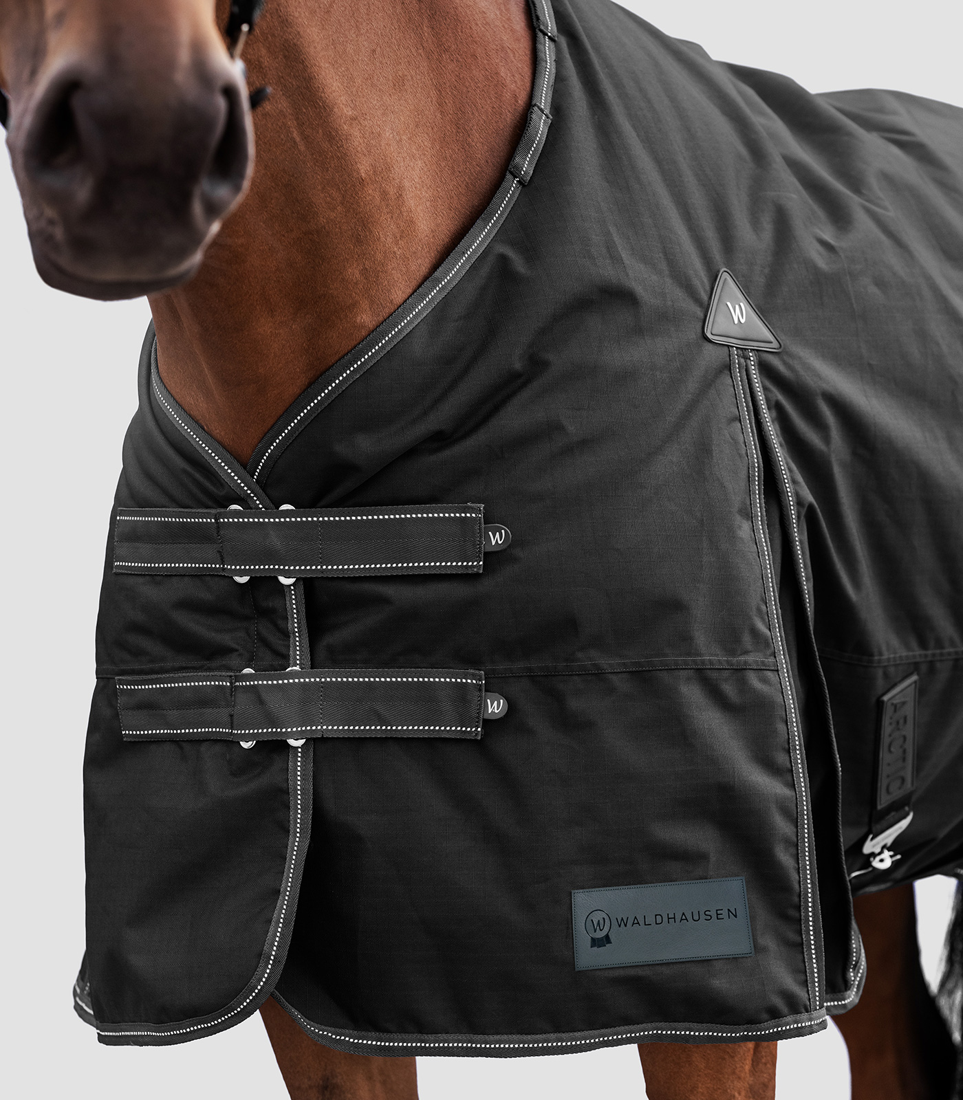 Con la manta Outdoor Waldhausen Artic podrá tener la seguridad de que el caballo estará perfectamente protegido incluso en condiciones adversas. El forro interior con efecto antibacteriano garantiza el máximo confort. Los cierres frontales dobles en T garantizan un ajuste seguro y tienen un efecto antideslizante. La banda elástica presenta detalles reflectantes y así aumenta la visibilidad en condiciones de poca luz. El fuelle de gran tamaño permite una libertad óptima de movimiento, mientras que las correas cruzadas proporcionan estabilidad adicional. El material exterior de 600D ofrece una barrera resistente al viento y la intemperie. Inserción Stay Clean: Adiós a los pelos de caballo en las mantas recién estrenadas. La incrustación Stay Clean de Waldhausen es una solución práctica e innovadora para probar mantas de caballo de manera higiénica y sencilla, sin ensuciarlas ni llenarlas de pelos. Esta incrustación se integra directamente en las nuevas mantas de exterior de Waldhausen y se fija en el interior, evitando el contacto directo entre el lomo del caballo y la manta. El resultado: la manta permanece limpia, incluso si solo se ha utilizado una vez para una prueba. Es importante destacar que la incrustación Stay Clean está diseñada para un uso temporal durante la prueba y no para un uso permanente. Se puede retirar fácilmente simplemente despegándola. – Ripstop de 600 deniers – Transpirable – Forro interior antibacteriano – Impermeable (columna de agua 3000 mm) – Cierre delantero en T doble con cubierta protectora de cierre de velcro – Lazos de fijación para colocar un cuello – Compatible con las mantas Clip-in (armellas y anillas para fijar un interior térmico) – Fuelle extragrande para una libertad óptima de movimiento – Correas cruzadas – Protector de cola supergrande con bordado reflectante Waldhausen – Hebillas de diseño Waldhausen – Ribete con detalles reflectantes para una buena visibilidad – Con práctica bolsa para mantas Waldhausen – Con inserción Stay-Clean Exterior: 100 % poliéster Forro: 100 % poliéster Relleno: 100 % poliéster