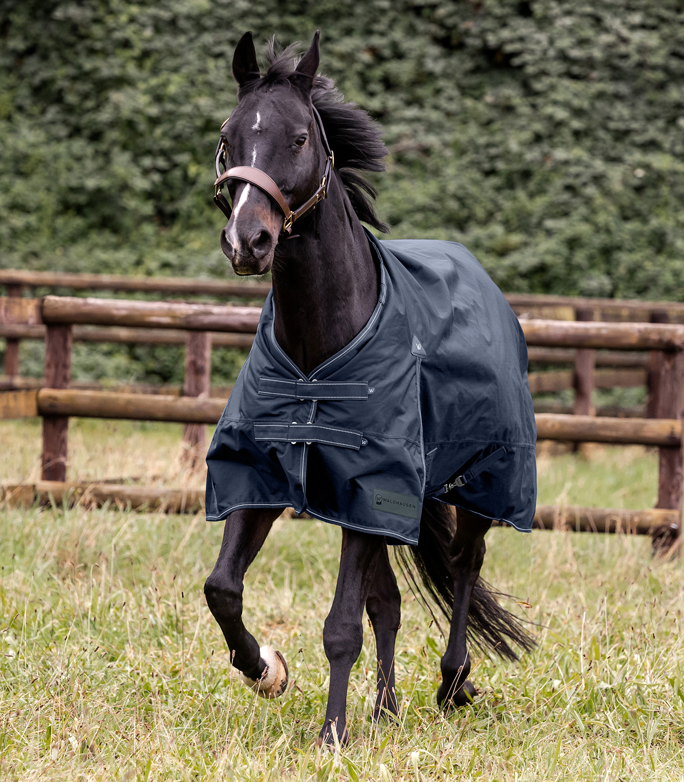 Con la manta Outdoor Waldhausen Artic podrá tener la seguridad de que el caballo estará perfectamente protegido incluso en condiciones adversas. El forro interior con efecto antibacteriano garantiza el máximo confort. Los cierres frontales dobles en T garantizan un ajuste seguro y tienen un efecto antideslizante. La banda elástica presenta detalles reflectantes y así aumenta la visibilidad en condiciones de poca luz. El fuelle de gran tamaño permite una libertad óptima de movimiento, mientras que las correas cruzadas proporcionan estabilidad adicional. El material exterior de 600D ofrece una barrera resistente al viento y la intemperie. Inserción Stay Clean: Adiós a los pelos de caballo en las mantas recién estrenadas. La incrustación Stay Clean de Waldhausen es una solución práctica e innovadora para probar mantas de caballo de manera higiénica y sencilla, sin ensuciarlas ni llenarlas de pelos. Esta incrustación se integra directamente en las nuevas mantas de exterior de Waldhausen y se fija en el interior, evitando el contacto directo entre el lomo del caballo y la manta. El resultado: la manta permanece limpia, incluso si solo se ha utilizado una vez para una prueba. Es importante destacar que la incrustación Stay Clean está diseñada para un uso temporal durante la prueba y no para un uso permanente. Se puede retirar fácilmente simplemente despegándola. – Ripstop de 600 deniers – Transpirable – Forro interior antibacteriano – Impermeable (columna de agua 3000 mm) – Cierre delantero en T doble con cubierta protectora de cierre de velcro – Lazos de fijación para colocar un cuello – Compatible con las mantas Clip-in (armellas y anillas para fijar un interior térmico) – Fuelle extragrande para una libertad óptima de movimiento – Correas cruzadas – Protector de cola supergrande con bordado reflectante Waldhausen – Hebillas de diseño Waldhausen – Ribete con detalles reflectantes para una buena visibilidad – Con práctica bolsa para mantas Waldhausen – Con inserción Stay-Clean Exterior: 100 % poliéster Forro: 100 % poliéster Relleno: 100 % poliéster