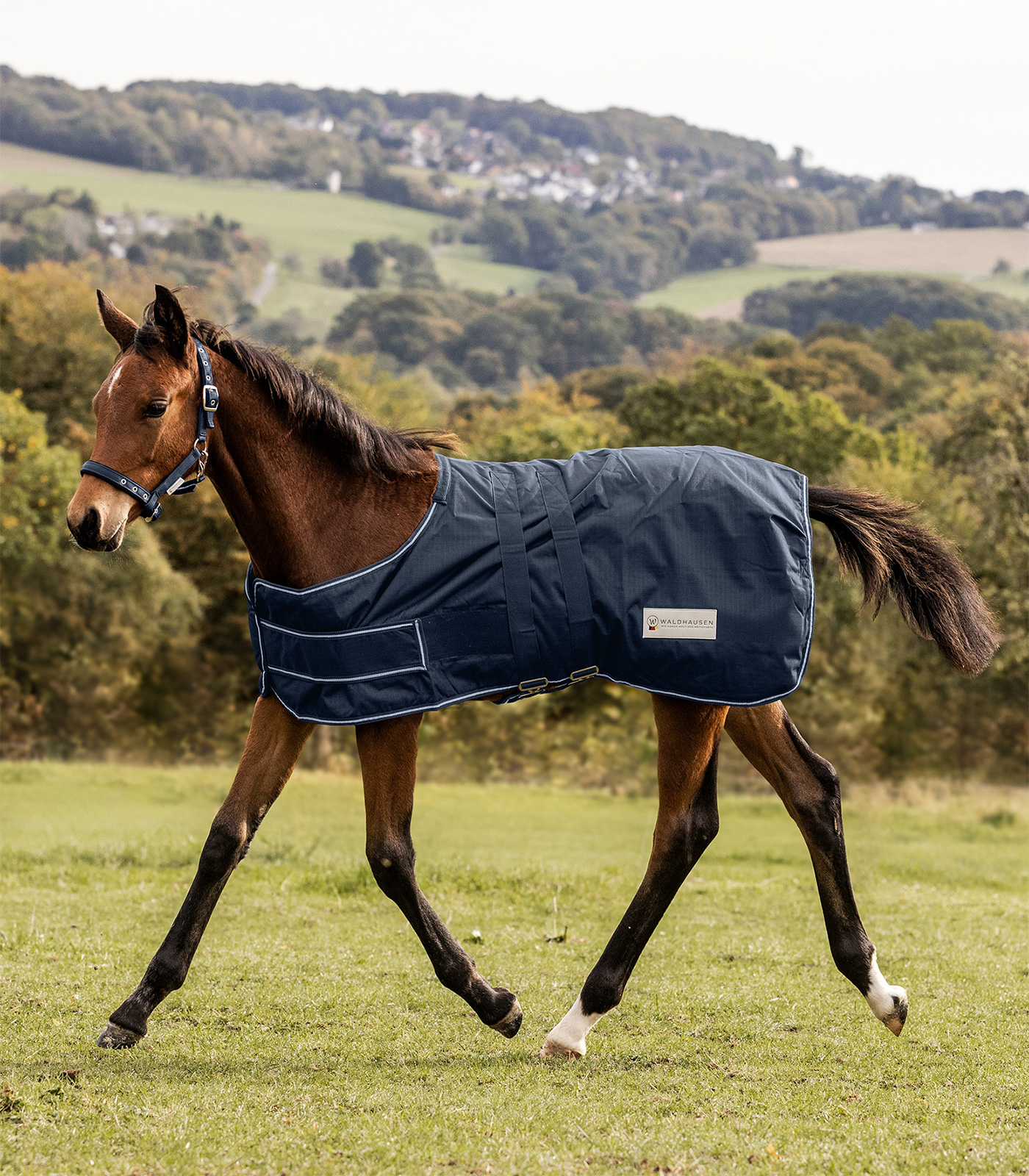 Manta para potro outdoor con acolchado térmico de 100g/m² y forro interior antisudor. Excelente ajuste gracias al cierre delantero de resistente gancho y bucle, regulable. Con pechera y correas para la patas Longitud dorso: 83 cm Exterior: 100 % poliéster Forro: 100 % poliéster Relleno: 100 % poliéster