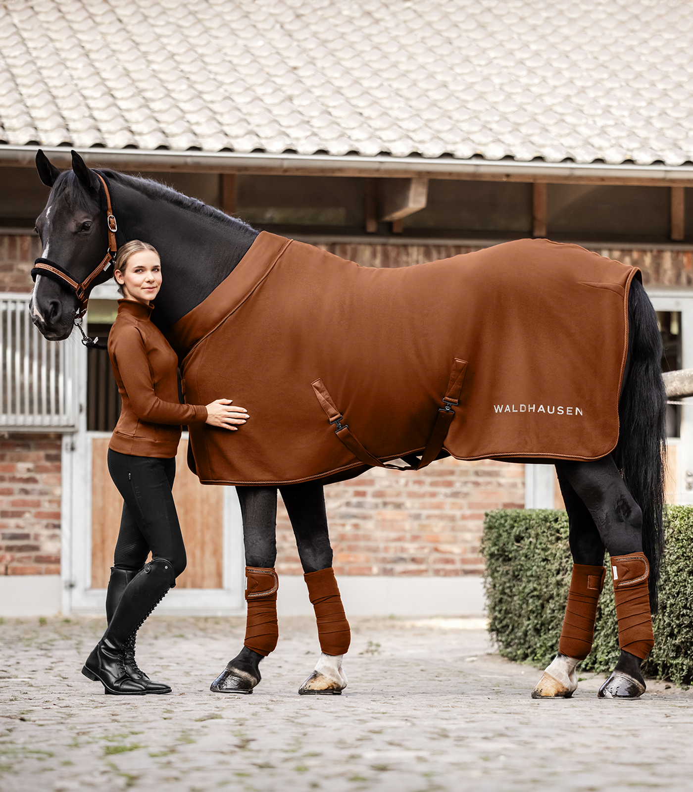 Manta polar elegante con acolchado suave en el cuello y en la zona de la cruz. La manta polar con acolchado polar de alta calidad antipilling permite una eliminación óptima del sudor. Con cordel decorativo tonal y rótulo brillante de Waldhausen. Hebillas cruzadas removibles.