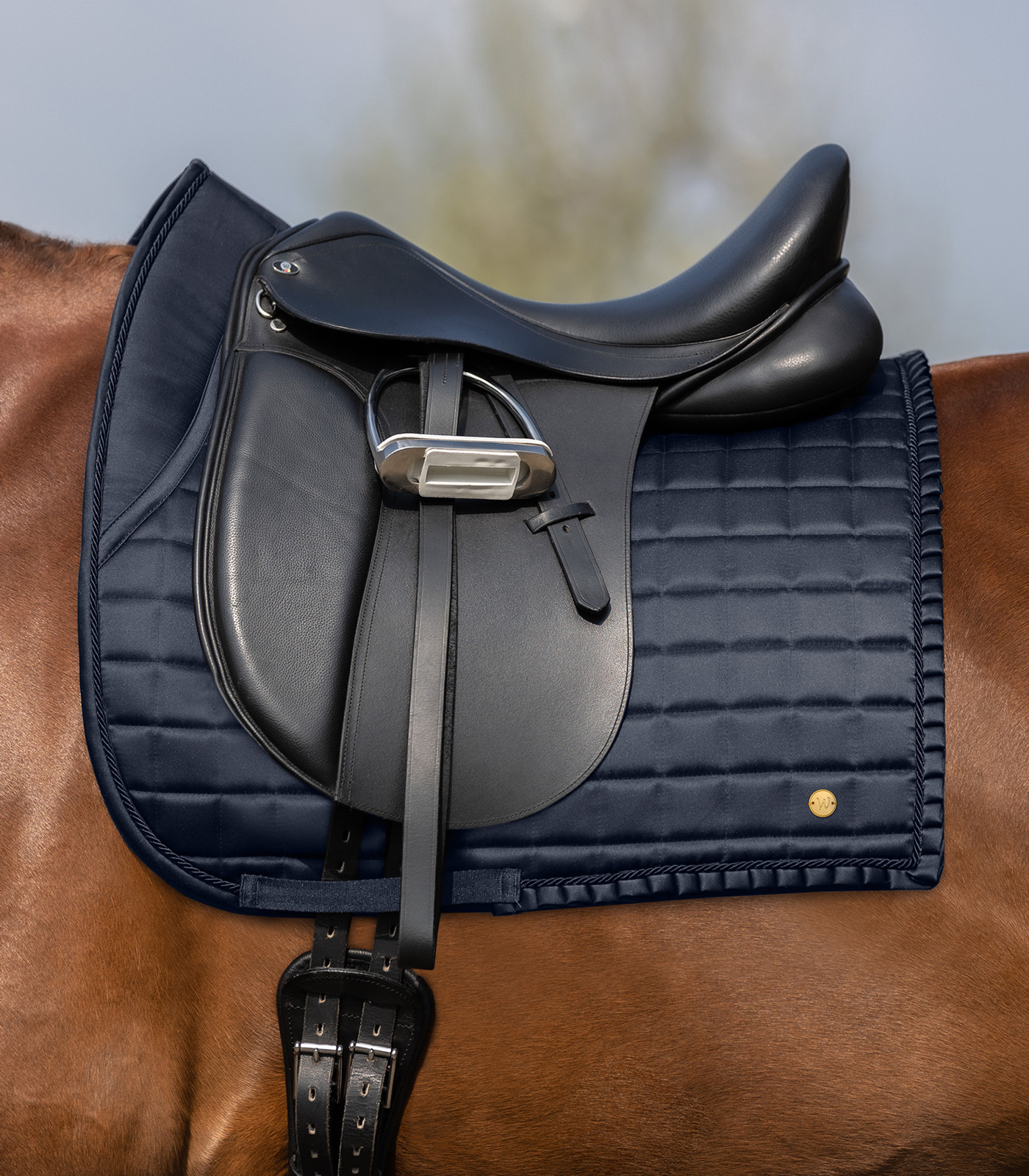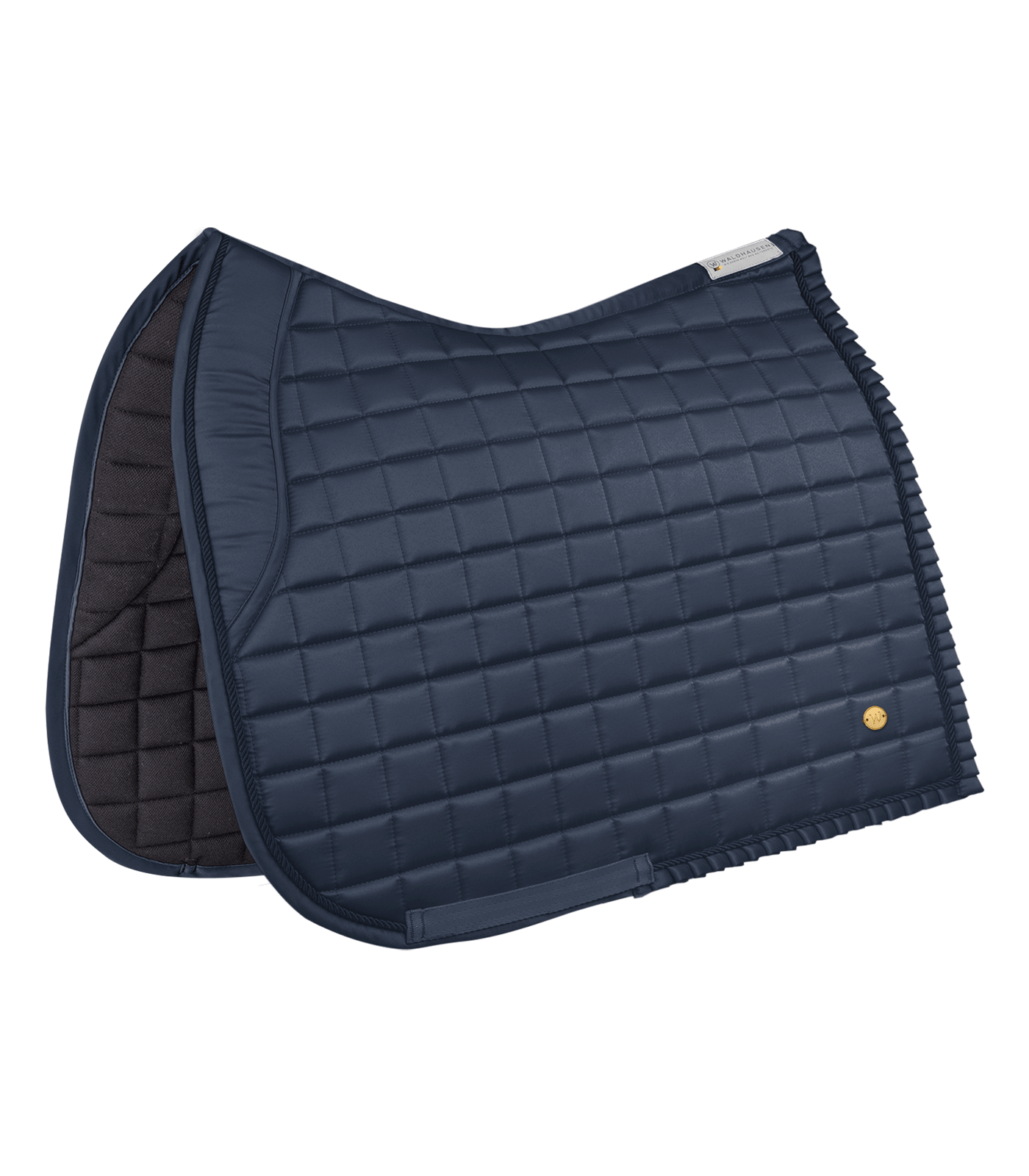 Elegante mantilla con efecto de seda y una banda de volante plisado. La almohadilla y el lazo de nudo simple o dividido impide que la silla de montar se resbale. El revestimiento de bambú que absorbe el sudor es sumamente confortable.