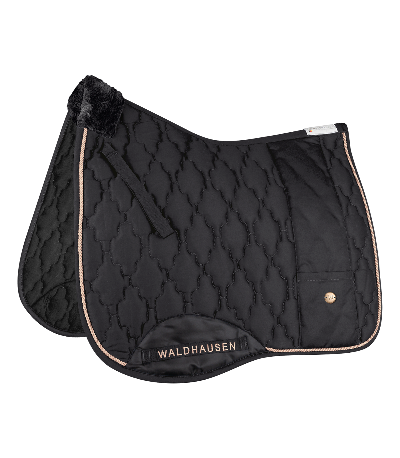 Mantilla de alta calidad con suave acolchado en la cruz, así como un pequeño bolsillo para guardar recompensas, pañuelos, y muchas más cosas. El pespunteado floral, así como el cordón en oro rosado y las pequeñas plaquitas de metal también en oro rosado le dan un toque elegante a esta mantilla. El corte compacto y anatómico, así como el acolchado de 200g/m² y la espuma de 10 mm son garantía de un confort ideal y de una compensación óptima de la presión. A juego con nuestra colección modern rosé Material exterior: 75 % poliéster, 25 % algodón. Forro: 100% poliéster. Relleno: Guata: 100 % poliéster, Acolchado: 100 % poliuretano
