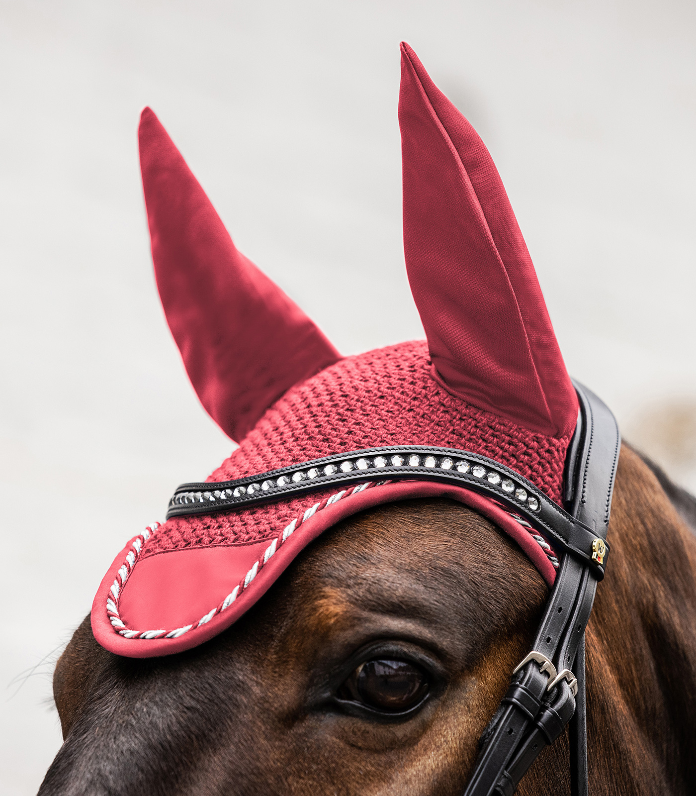 Máximo confort por su tejido de poliéster suave y elástico. La parte de la frente está hecha a ganchillo y completada con un cordel decorativo tricolor. Con orejas elásticas.