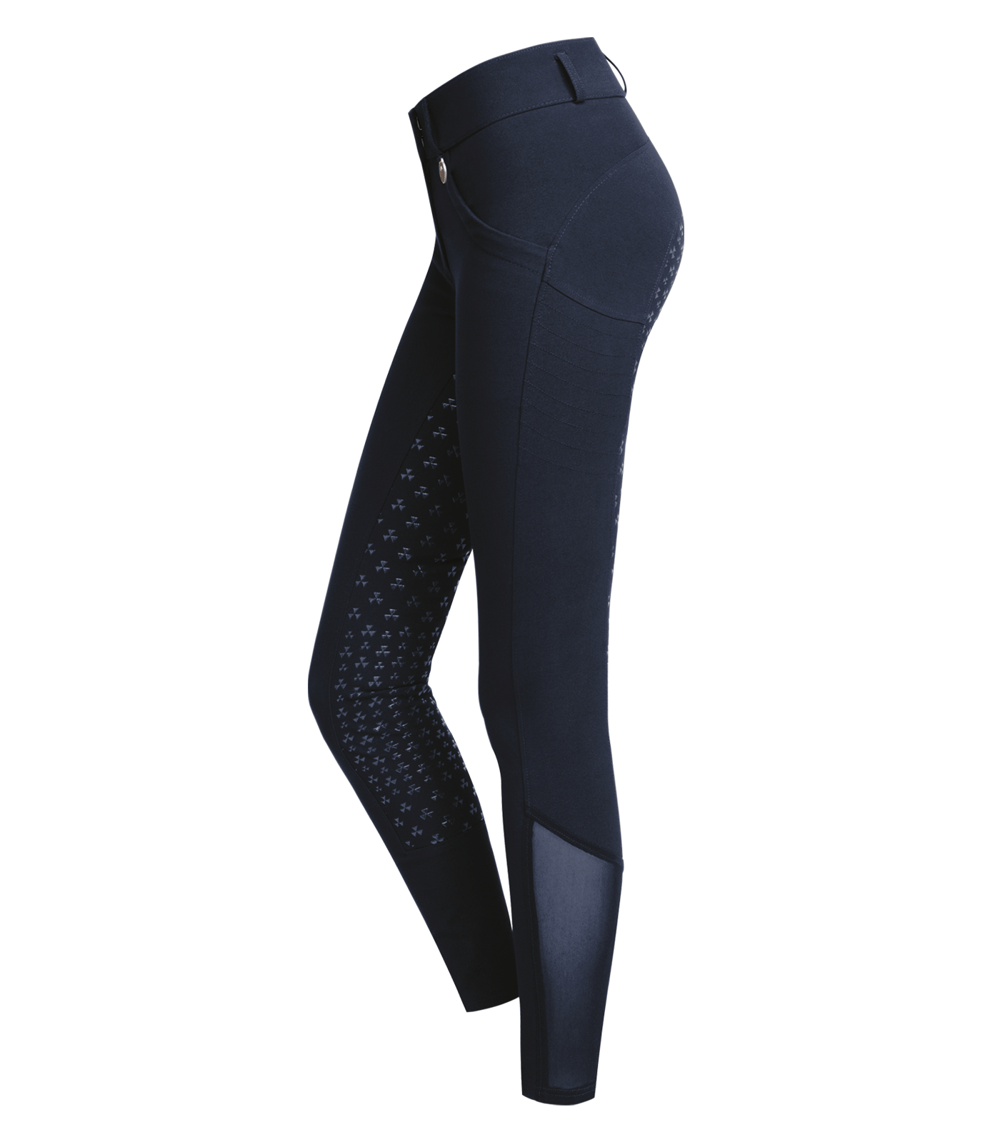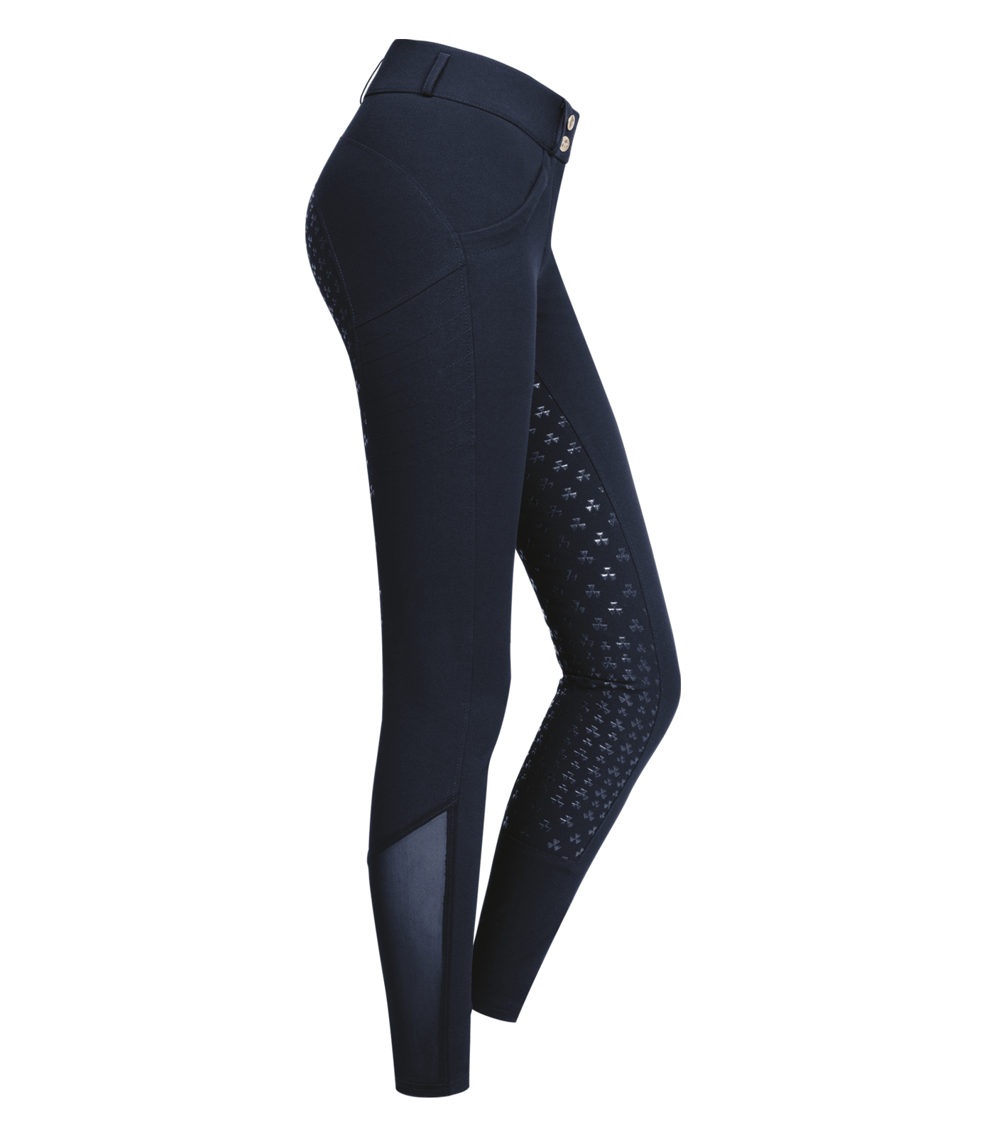 – Pantalones de equitación en diseño de moda con cintura alta – Inserción completa de silicona – Bajo pernera elástico con inserción de malla – Transpirable – Material repelente al agua – Bi-elástico – Sintético – Bolsillos con cremallera en la parte delantera – Tag metálico ELT de primera categoría – Con efecto Push-up Material: 60% poliéster, 35% viscosa, 5% elastano