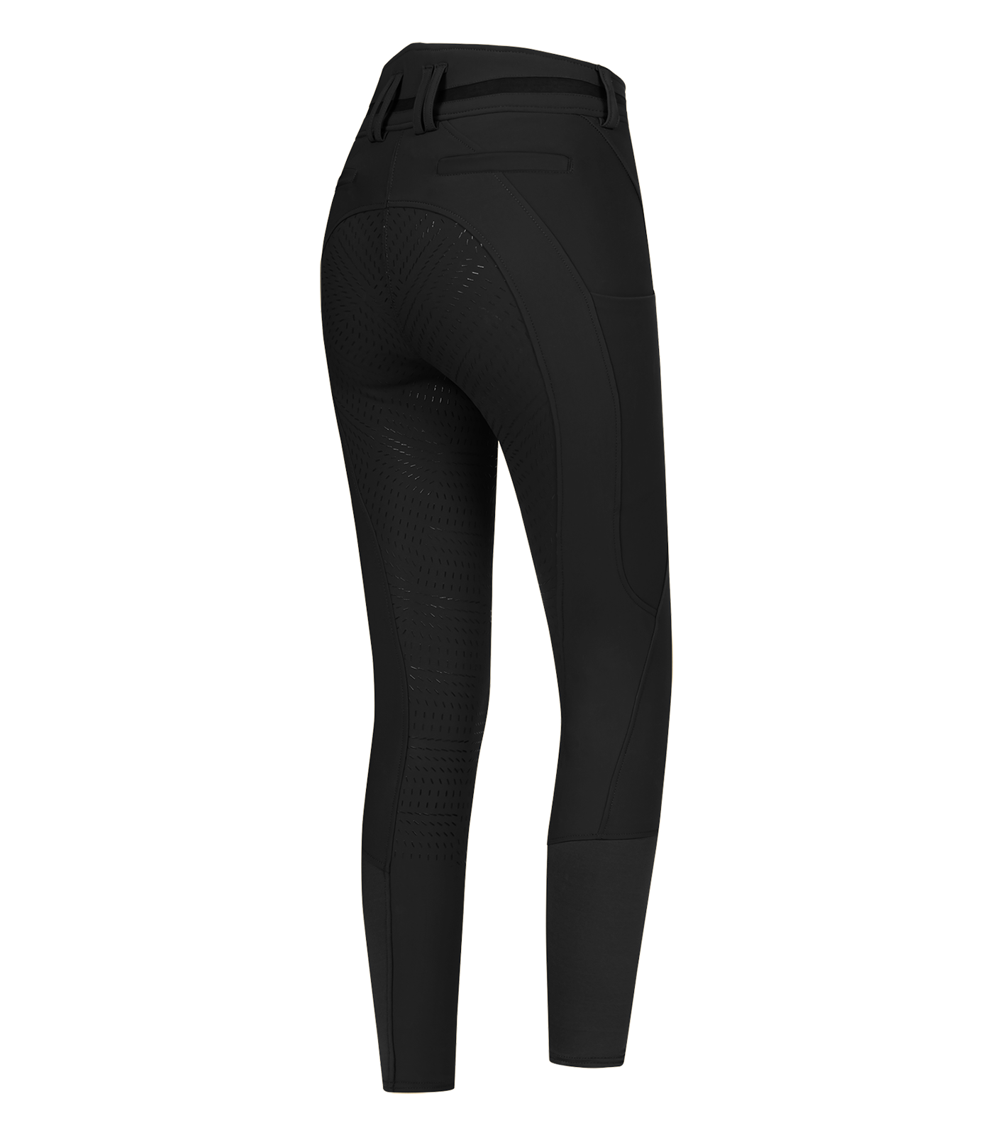 Aplicación completa de silicona con diferentes zonas Grip antideslizantes – Logotipo estampado de silicona integrado en la aplicación – Extremo de la pierna elástico – Material encordelado: muy elástico, de forma estable, transpirable y con interior suave – Material bielástico – Ceñido – Efecto compresor – Material sintético – Bolsillos con cordón decorativo en la parte trasera – Bolsillo lateral para el teléfono móvil – Bolsillos de cremallera con costura oculta en la parte delantera – Etiqueta de metal E·L·T de alta calidad – Pretina con rayas de satén – Texto decorativo E·L·T en el muslo izquierdo La funcionalidad de los pantalones de equitación depende en gran parte de la calidad del material empleado. En el caso de los pantalones de equitación E·L·T, el material y la forma se han armonizado entre sí, por lo que constituyen el equipamiento perfecto en cualquier ocasión. Material de 2 capas: el exterior es repelente a la suciedad y al agua. El interior es suave y garantiza un uso muy confortable. El tejido es transpirable y tiene propiedades elásticas para mantener la figura de forma óptima. Exterior: 77 % poliamida, 23 % elastano; interior: 92 % poliéster, 8 % elastano
