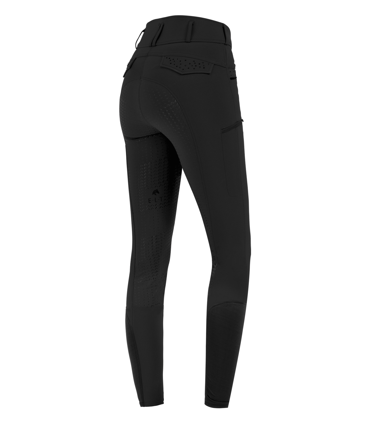– Pantalones equitación de plena tendencia con cintura alta – Inserción completa de silicona con diversas zonas Grip antideslizantes – Bajo pierna elástico – Transpirable – Bi-elástico – Sintético – Bolsillos decorativos en la parte trasera – Bolsillos laterales en la parte delantera – Bolsillo portamóvil con cremallera -Piedras estrás decorativas – Detalles de brillo – Etiqueta de metal E·L·T de alta calidad Material: 90 % poliéster, 10 % elastano