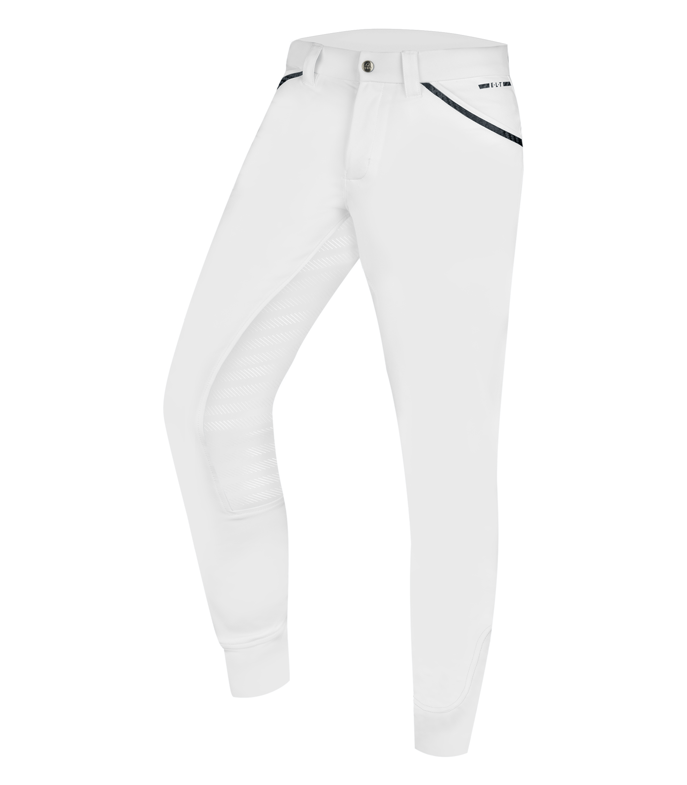 – Pantalones deportivos de equitación para hombre – Aplicación completa de silicona – Extremo de la pierna elástico – Material encordelado: muy elástico, de forma estable, transpirable y con interior suave – Material bielástico – Efecto compresor – Bolsillos para las manos con cinta de carbono en la parte delantera – Bolsillos con tapeta aplicados y botón en la parte trasera – Bolsillo lateral para el teléfono móvil – Aplicación con logotipo E·L·T con efecto carbono en el lado delantero y trasero Exterior: 77 % poliamida, 23 % elastano; interior: 92 % poliéster, 8 % elastano