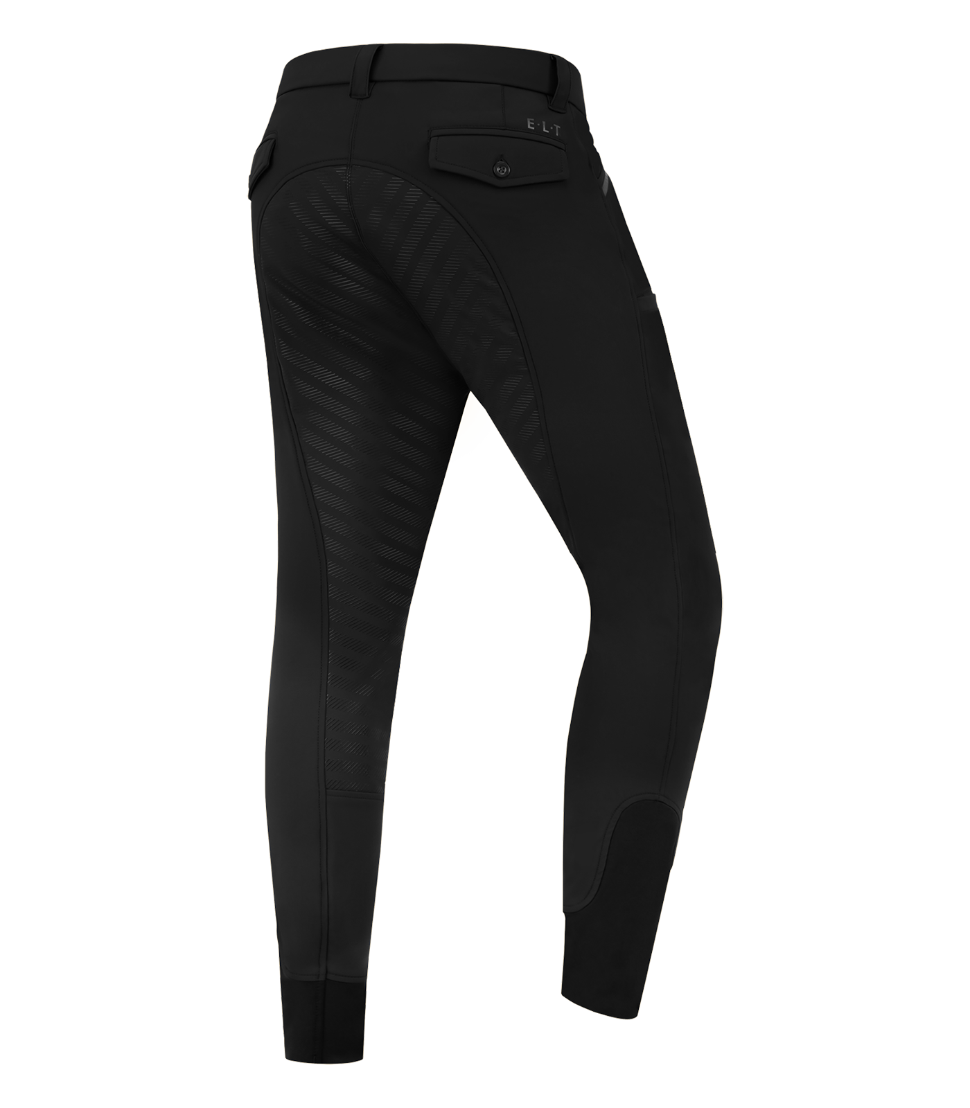 – Pantalones deportivos de equitación para hombre – Aplicación completa de silicona – Extremo de la pierna elástico – Material encordelado: muy elástico, de forma estable, transpirable y con interior suave – Material bielástico – Efecto compresor – Bolsillos para las manos con cinta de carbono en la parte delantera – Bolsillos con tapeta aplicados y botón en la parte trasera – Bolsillo lateral para el teléfono móvil – Aplicación con logotipo E·L·T con efecto carbono en el lado delantero y trasero Exterior: 77 % poliamida, 23 % elastano; interior: 92 % poliéster, 8 % elastano