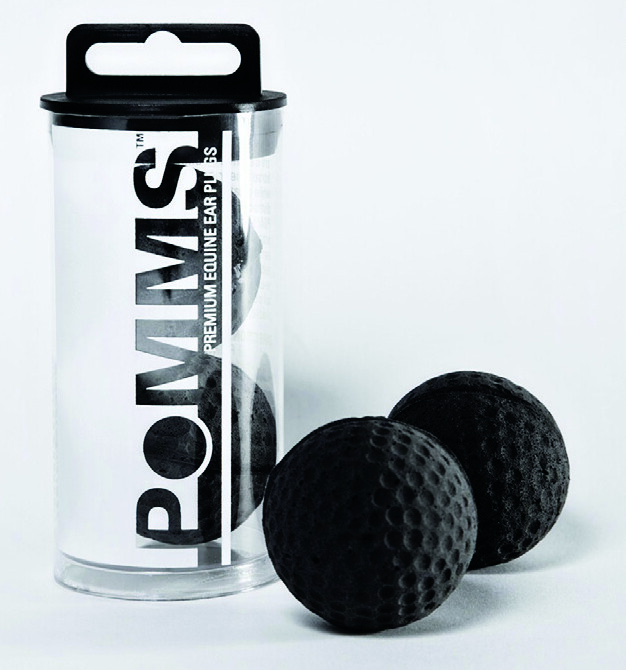 Las pomms son los tapones para los oídos que venden en los Estados Unidos. Son una nueva innovación de diseño para mejorar el enfoque y alentar la relajación al permitir que los caballos escuchen tonos normales, al tiempo que reducen en gran medida los ruidos distractores o fuertes. Los pomms crean un efecto de acupuntura en el oído interno de los caballos que induce una sensación relajante. Hecho de material texturizado suave y cómodo que proteja las orejas sensibles a los caballos del viento, el agua y los escombros. Son discretos, duraderos y no se caen. Fácil de rodar en el canal auditivo para un ajuste cómodamente ajustado. Se vende en un paquete de granero de 10 pares.