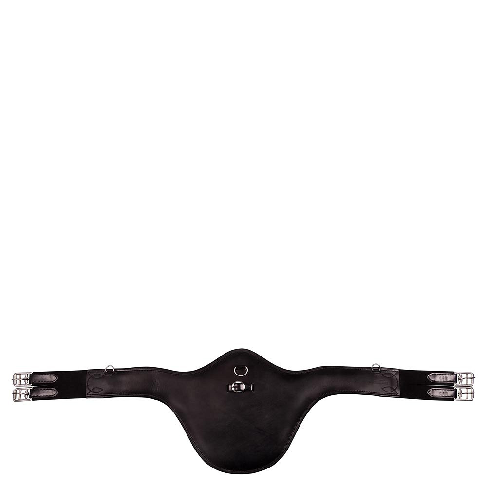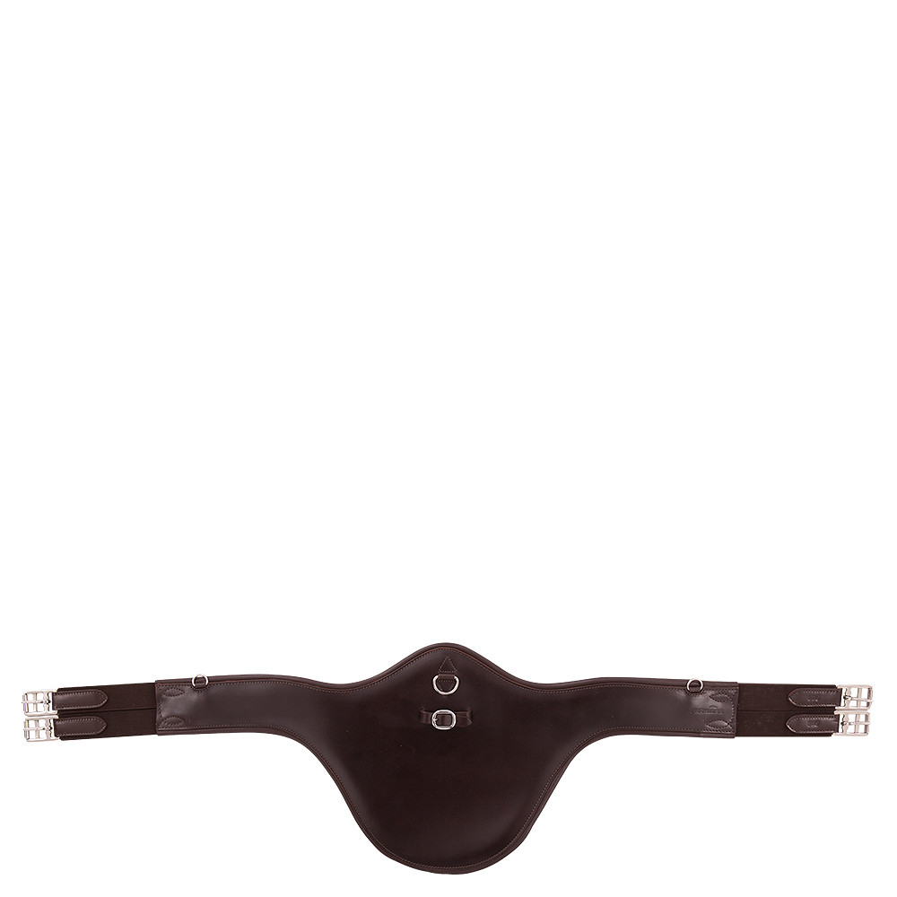 Premiere Girth Troyes con protector de semental, esta cuero, circunferencia de forma anatómica presenta inserciones elásticas en ambos extremos y una correa central de anillos D y abrochado para la posible accesorio de riendas de dibujo. La protección del semental tiene 35 cm de ancho y proporciona una protección óptima del vientre al saltar. La forma anatómica de la circunferencia le da al caballo la máxima libertad de movimiento. Los insertos elásticos ofrecen comodidad adicional y esto hace que sea más fácil confundir a su caballo. También se aseguran de que la silla se mantenga en su lugar y en la posición correcta. Además, la circunferencia presenta un anillo D adicional en ambos lados para la posible unión de reins de sorteo o frenos. La circunferencia tiene hebillas de rodillos de acero inoxidable.