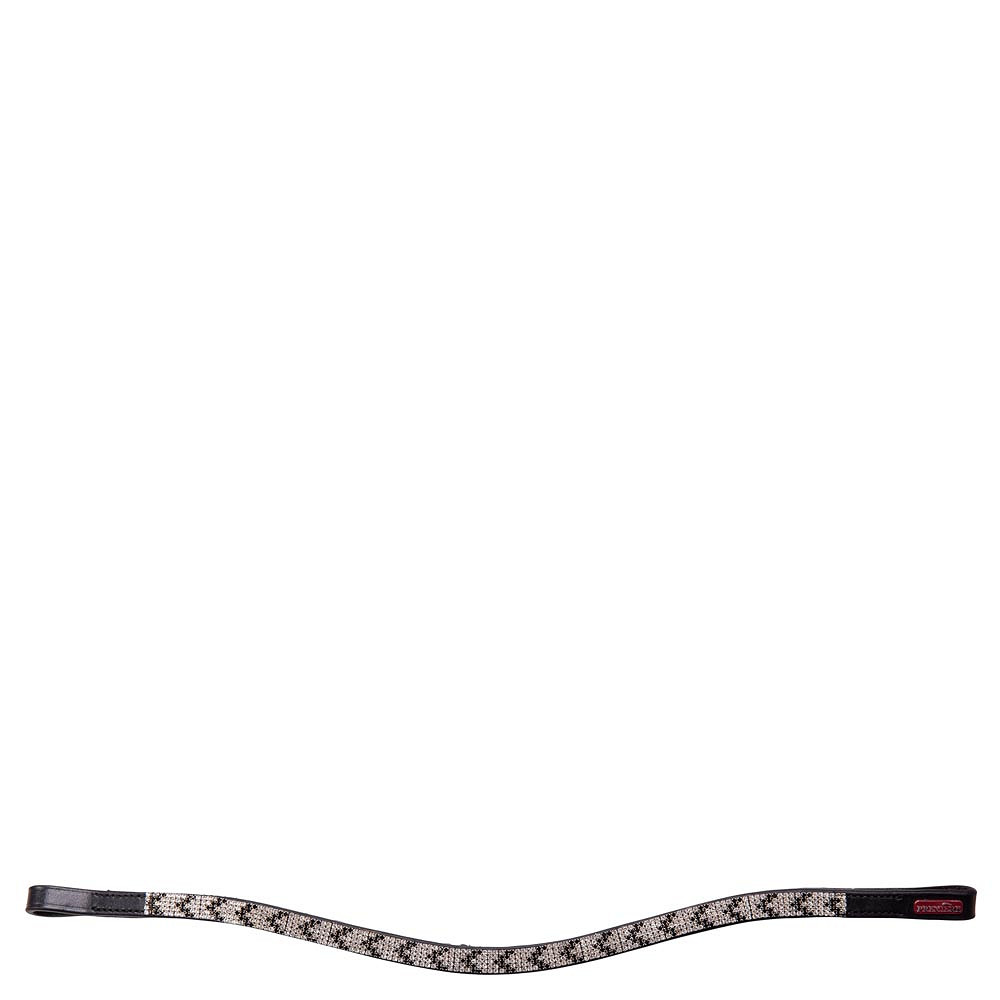 Premiere Browband Adamello, banda de cejas curva con cadena de 5 filas en diamantes de imitación negro+blanco con un patrón de flecha contrastante y forro de cuero suave.
