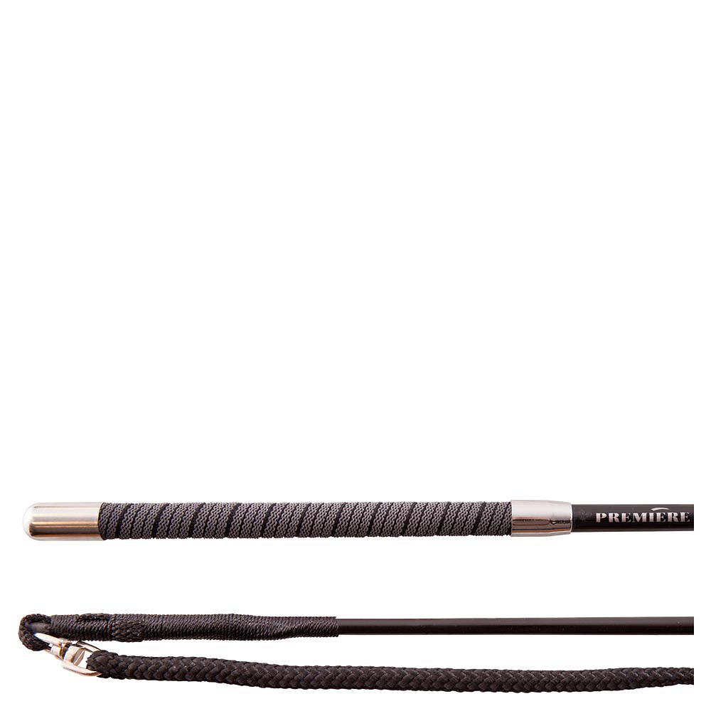 Premiere lanzar látigo de longitud de látigo de látigo de longitud premiere, látigo de lisonging hecho de compuesto de carbono hueco: una muy ligera (± 120 g a una longitud de 180 cm), material fuerte y duradero. El látigo es clima e impermeable, tiene un agarre sin esquema y un pestañas de nylon con anillo (en lugar de retorcido).