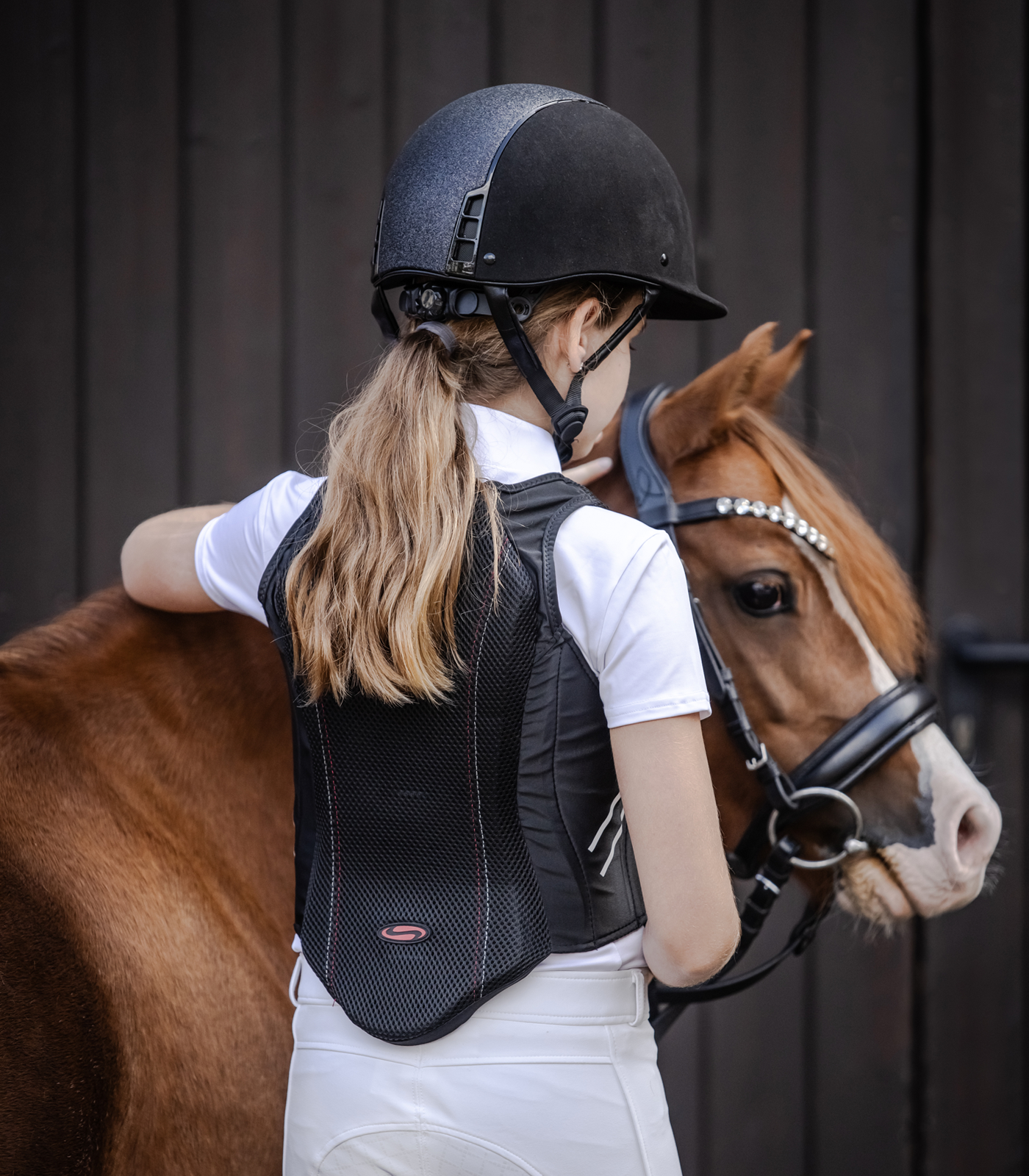 La nueva de protectores de espalda P07 SWING conquista gracias a su excelente confort y máxima protección para columna vertebral y coxis. – Protección para la columna vertebral certificada CE (según la norma europea UNE-EN 1621-2:2014) – Alto grado de Protección para columna vertebral y coxis – Máximo confort – Máxima libertad de movimientos – Ligero y flexible – Protección total El protector de espalda Los protectores de espalda Swing protegen el cuerpo sin menoscabar el placer de cabalgar en libertad. El empleo de materiales high-tech permite la máxima libertad de movimientos. Te recordamos que en las pruebas de concurso completo y en terreno variado la normativa alemana para concursos hípicos (LPO) impone el uso de un protector de este tipo de acuerdo con las normas UNE-EN 13158-2000 y 13158-2009.